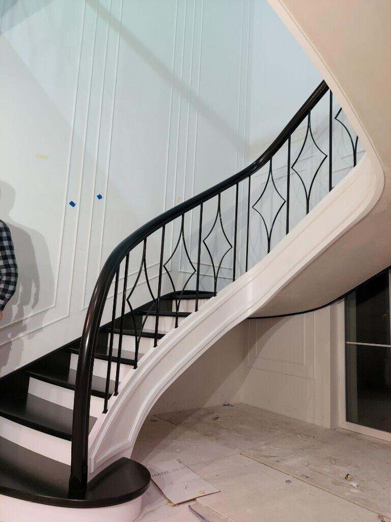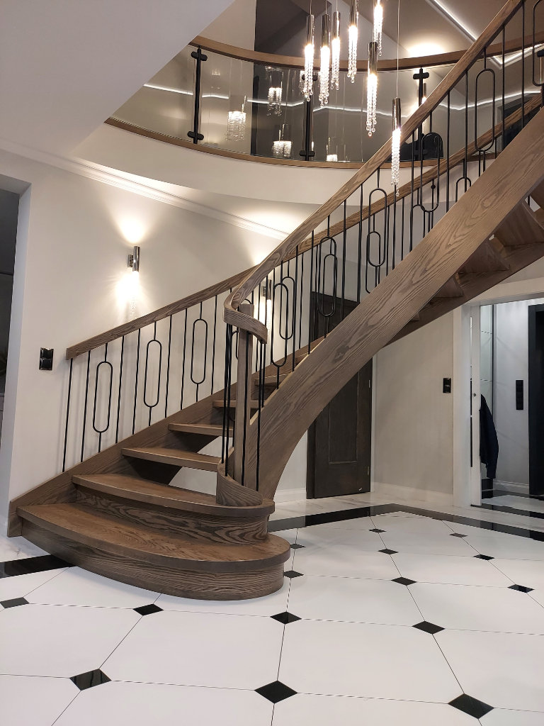 Oak exclusive curved stairs helicoidal stairs with iron balustrade UK Ltd
