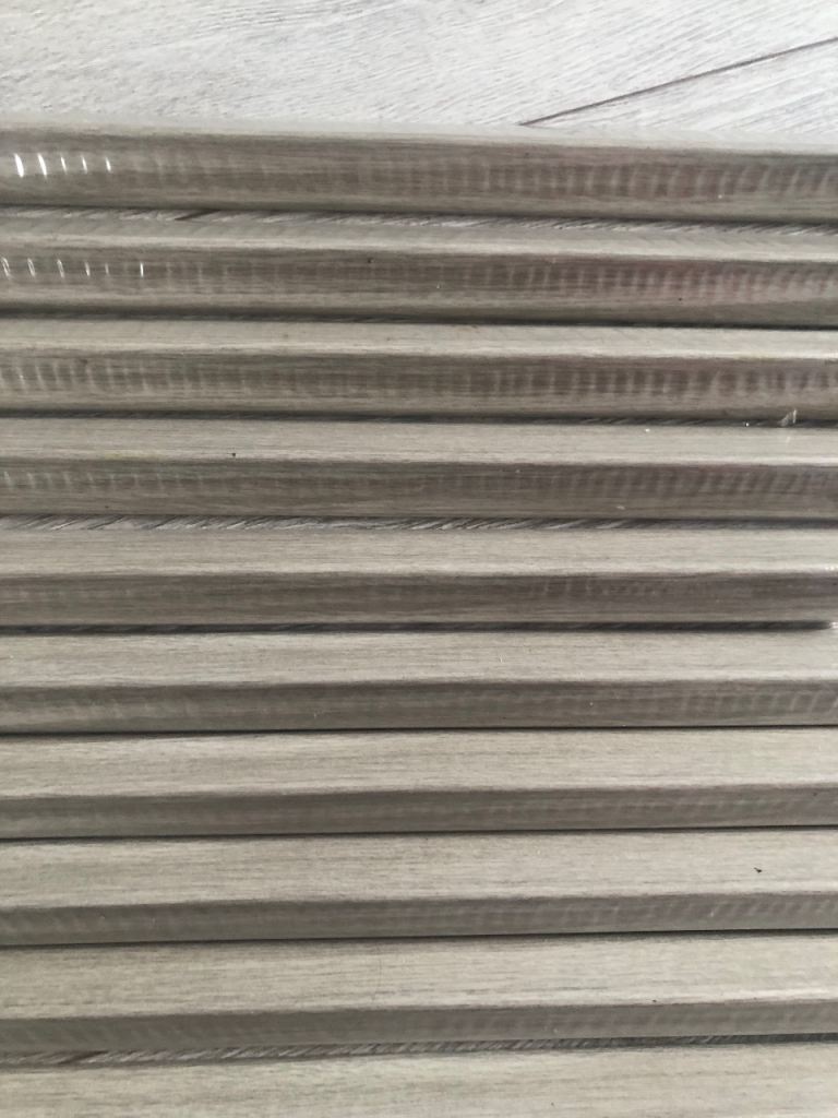 Made of hard PVC with wood-like veneer.