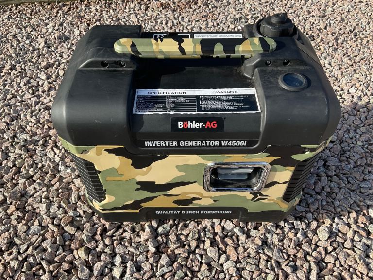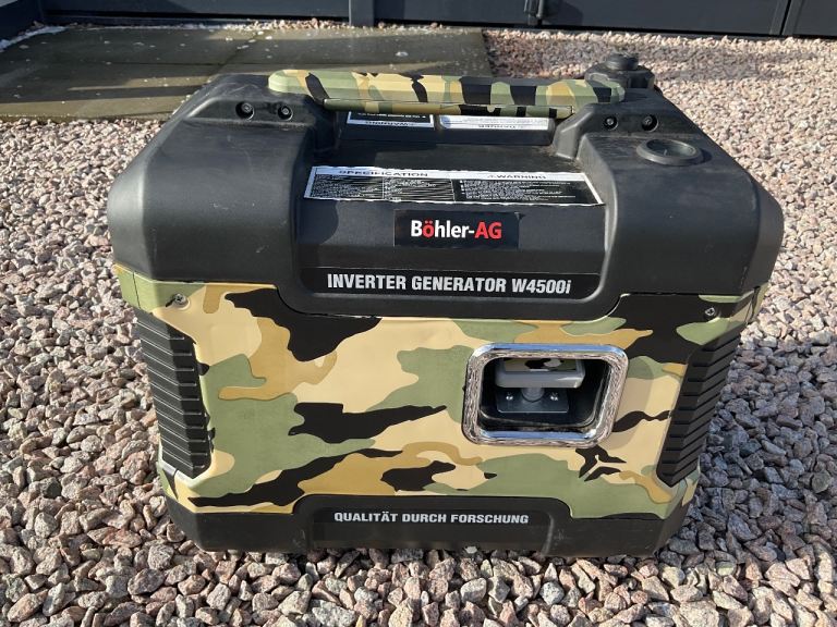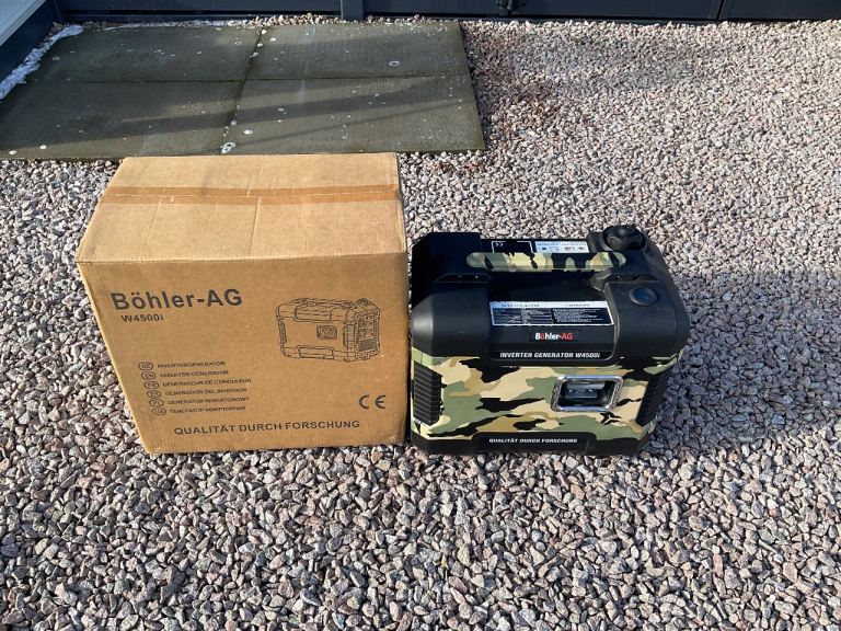 2 KW BOHLER W4500i Inverter gasoline generator. Maximum output 2kw. 1.9 kw continuous. This generator has had very little use. Was used with our motorhome a few times ( for hair dryer and coffee machine) . Motorhome now sold. At present it is available in Monifieth. Buyer to collect only.