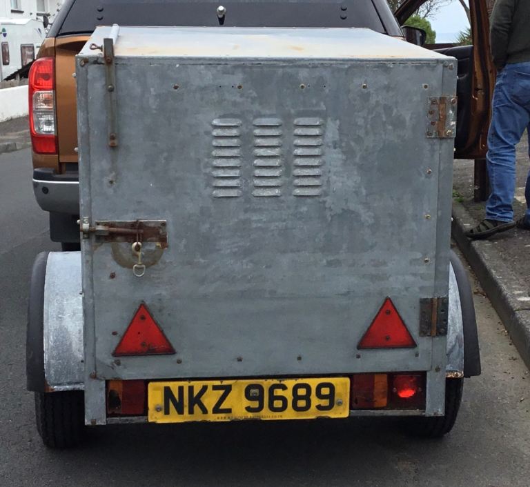 Broniss 4x3ft galvanised box trailer, undivided interior. Can carry 3/4 lab sized dogs or all your camping gear & bikes keeping your car interior odour free, clean & dry.