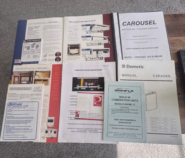 This one owner from new 2007 model, Gobur Carousel 10/2 Slimline has been well looked after and garage stored all its life. Comes complete with Powrtouch motor mover, awning, groundsheet, leisure battery, gas bottle, electric hook up cable, water pump, levelling ramps, step, and keys. The original carpet protector is still fitted.