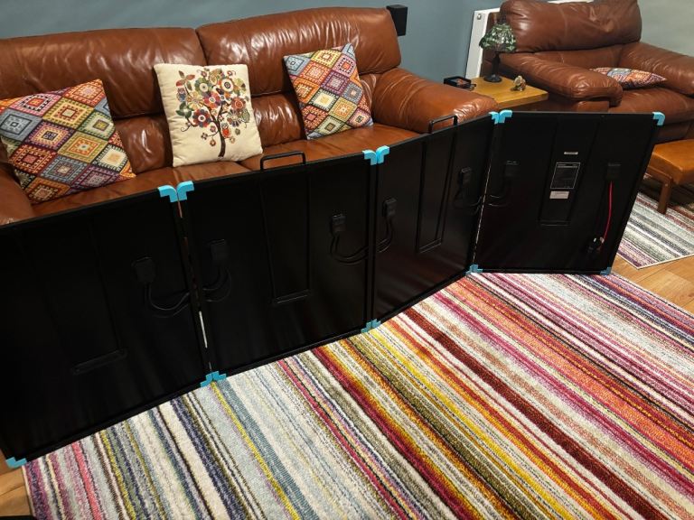 300 watt folding solar panel very sturdy due to aluminium frame and fully waterproof so can be left up all