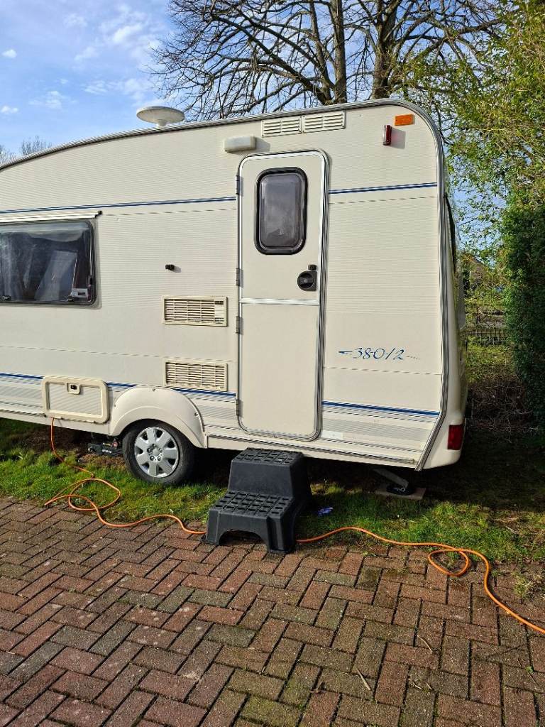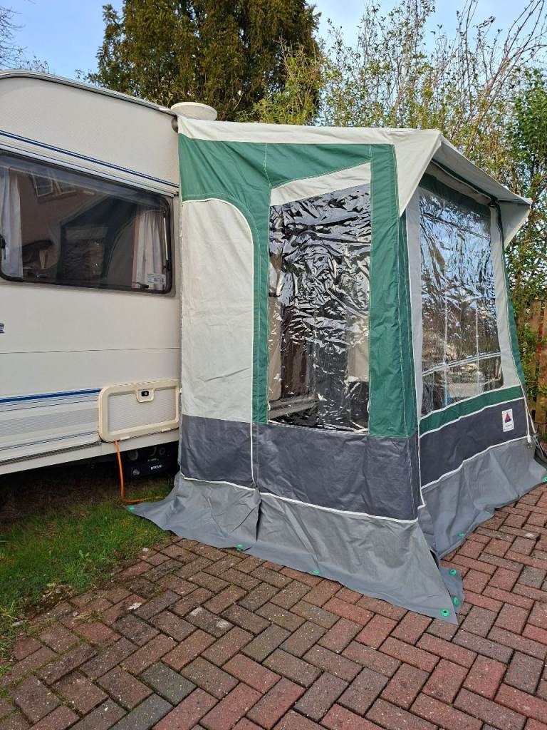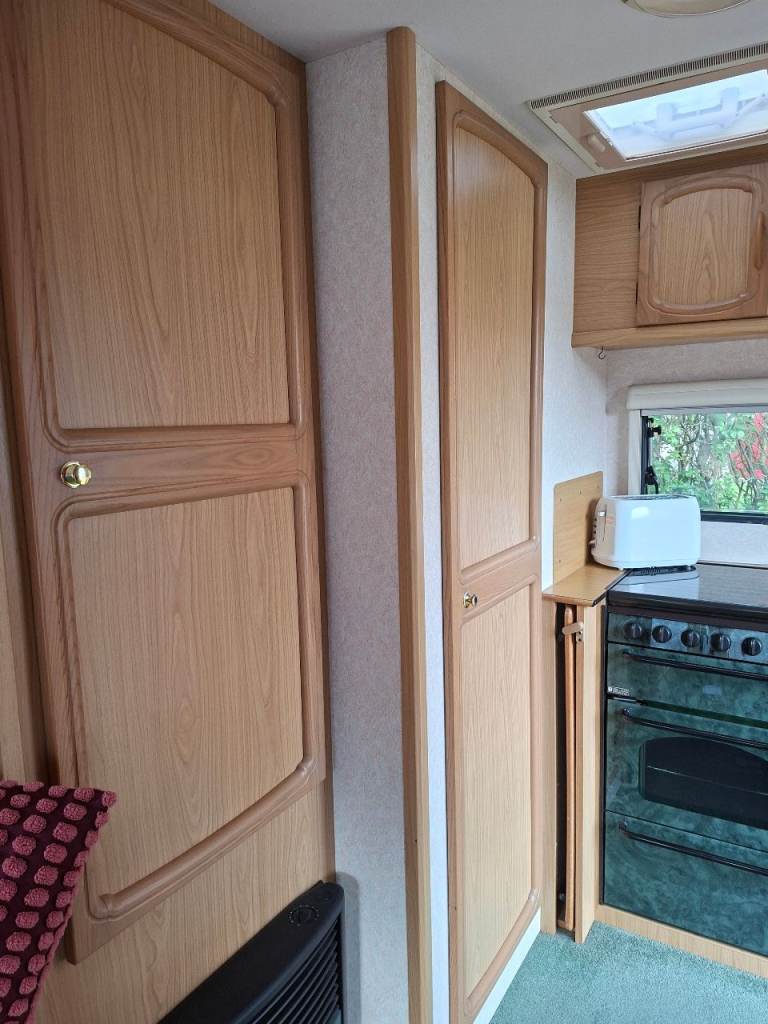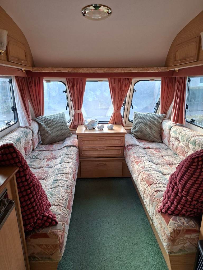 Clean and ready and fully equiped for its next adventure including electric hook up, status aerial, water barrel, waste master, leisure battery, gas bottle, steps, microwave, kettle, toaster, pots, pans and lovely melamine dishes.