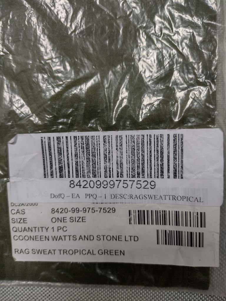 sweat rag tropical green new in bag - been stored