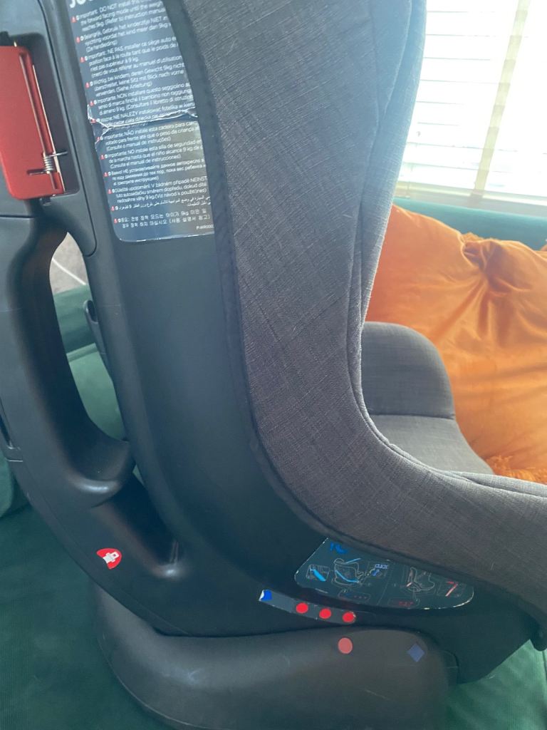 The joie car seat lies back for younger toddlers to sleep.