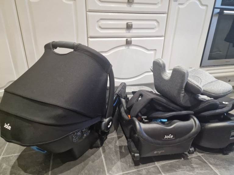 Joie car seat/carrier. 0-13kg. Two iso fix bases. New born and infant padding.
