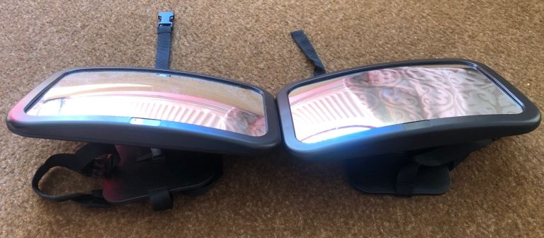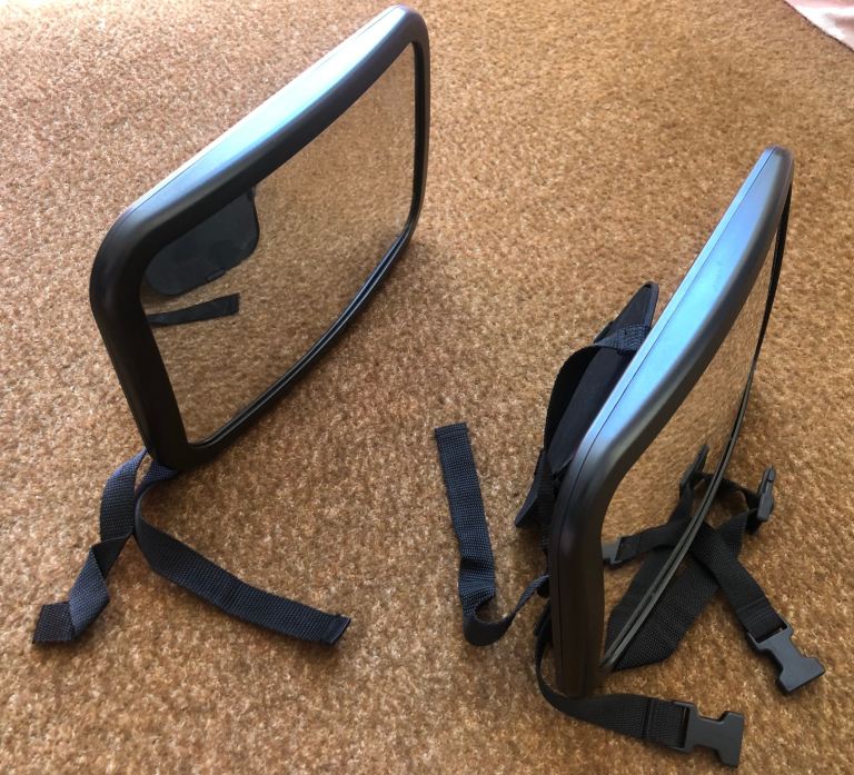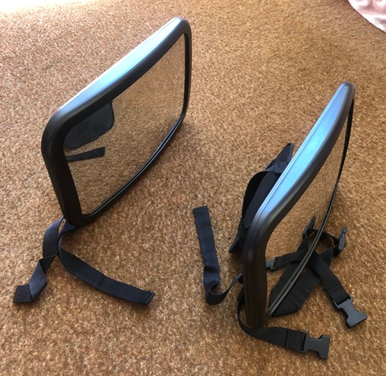 Two adjustable back seat mirrors for rear facing child seats. Wide view. Will sell separately if required.