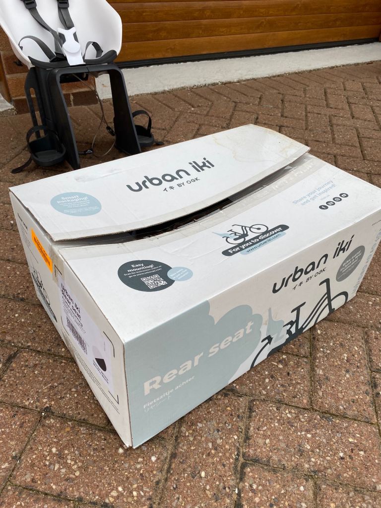 Urban Iki child’s rear bike seat and frame mounting. Suitable for children aged 9 months to 6 years old (9-22kg). Comes in original box with instructions and all parts needed, including numeric code lock. Used but in excellent condition. Collection only.