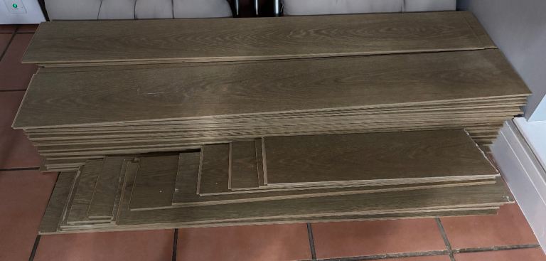 Posting for 6+ months65 full lengths medium oak laminate flooring plus 17 off cuts