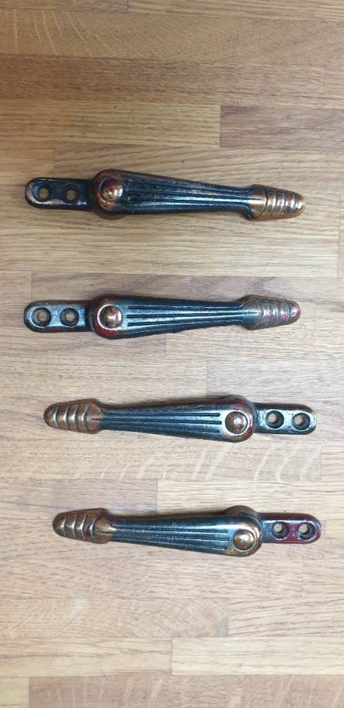 Reclaimed, made of cast iron with copper/brass finish. 26 clips in total, bearing characterful signs of use & wear commensurate with age.