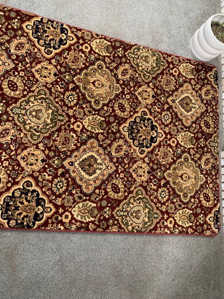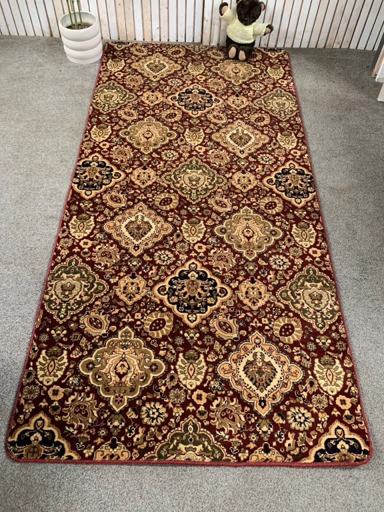 Beautiful traditional Persian-style runner rug in rich red with intricate pattern – perfect for hallways or narrow spaces.