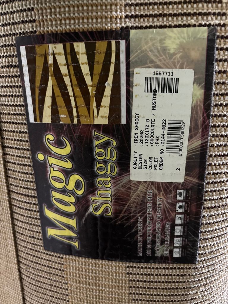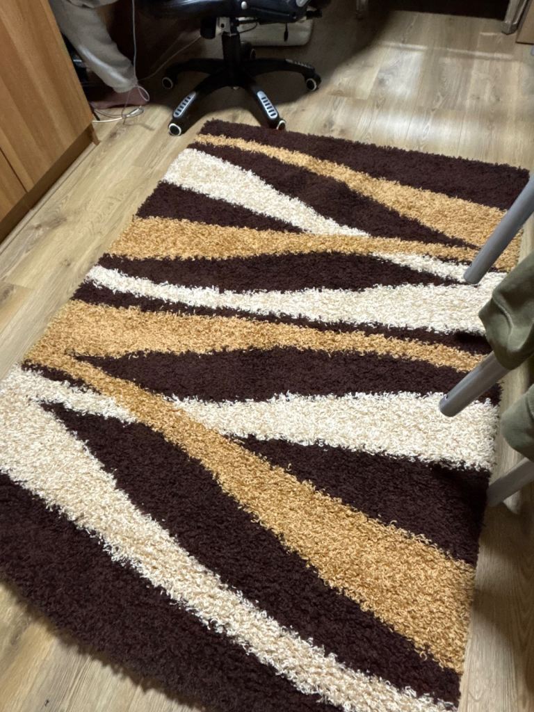 Posting for 10+ monthsBrown mustard/beige and white shaggy fluffy teddy bear carpet