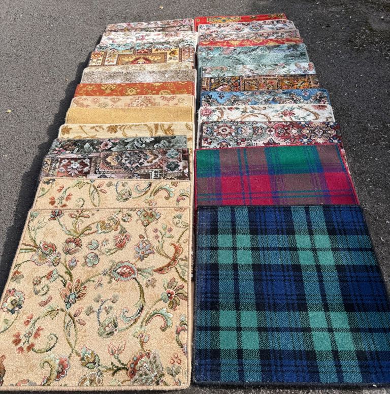 Search for the original carpet on Ebay under 'Navy & White Herringbone Pattern Loop Carpet Cheap Stain Resistant Feltback'.