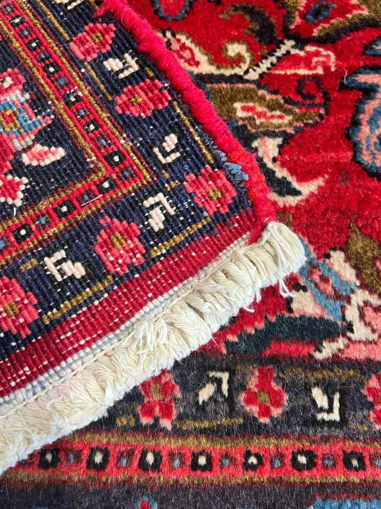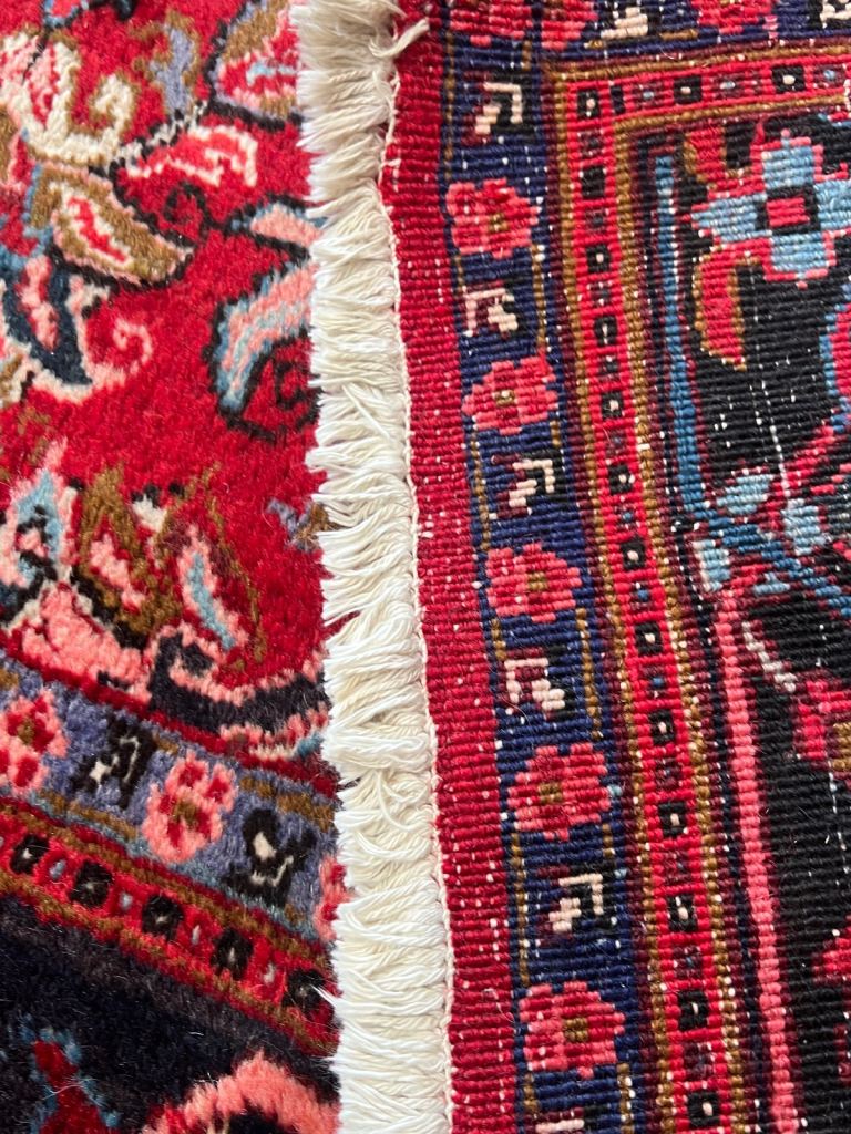 Hand made in Iran as new condition genuine Persian heriaz red & blue colours. Thick soft luxury feel wool pile .