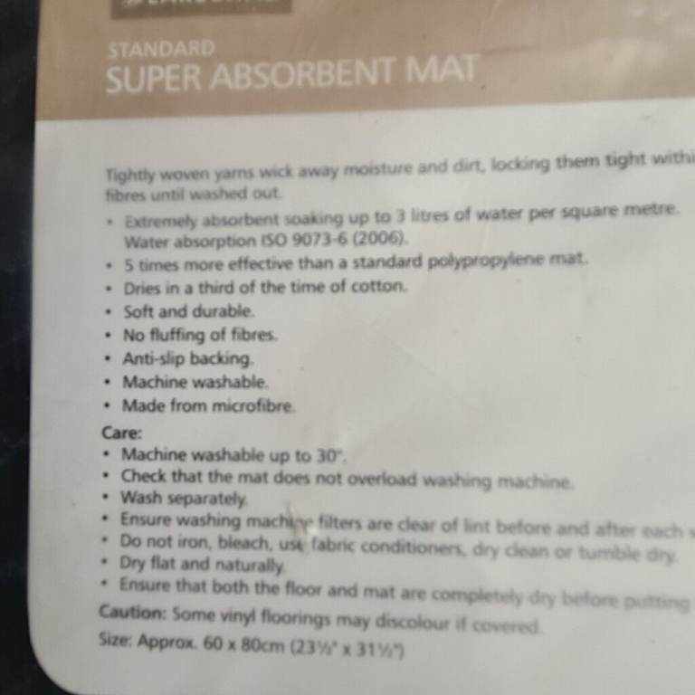 New Super Absorbant Anti-slip backing Floor Mat in brown. Machine washable. Size: 60 x 80cm. Still in wrapper.