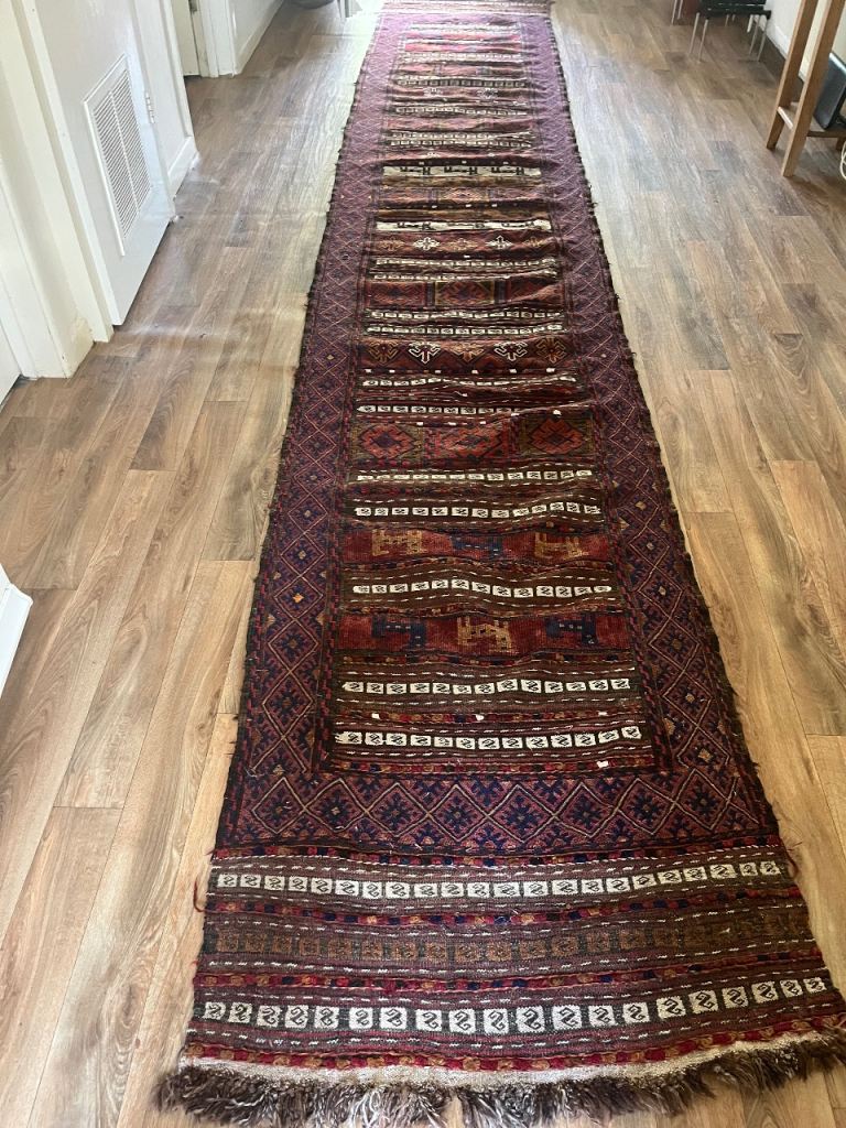 Handmade Long Vintage Persian Wool Rug Runner in lovely deep warm colours that would look great in any home…..Size Approximately 15ft 10 inches by 2ft 8 inches…Photo 6 is showing the back of the rug….Please look at all of the photos & then if you are Genuinely Interested & would like to view then please text for more details…Any Inspection Will Be Very Welcome viewing & Collection From The BH24 Area… Thank you