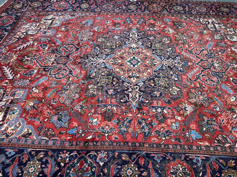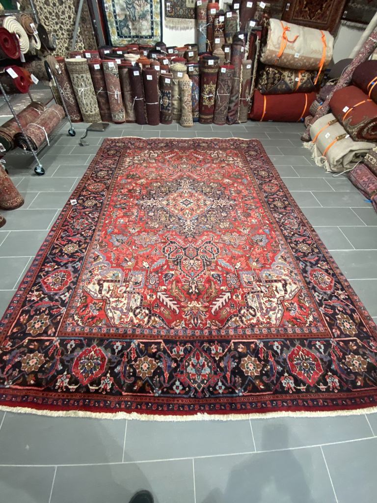 BUY ONE GET ONE 1/2 PRICE OFFER NOW ON .Genuine Persian vintage wool rug hand knotted in Iran ,XXL size 240x340cm rug in very good condition for age minor faded area £1600