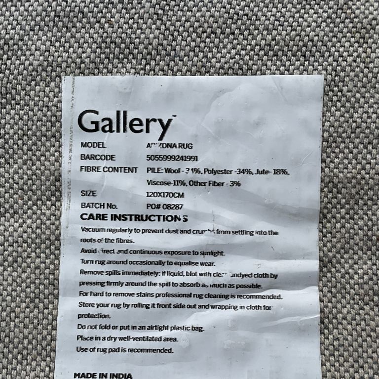 Here we have for sale our Arizona rug in Stone / Teal we purchased from Gallery Direct. This is a trade only company and our friends sourced it for us who had an account with them.