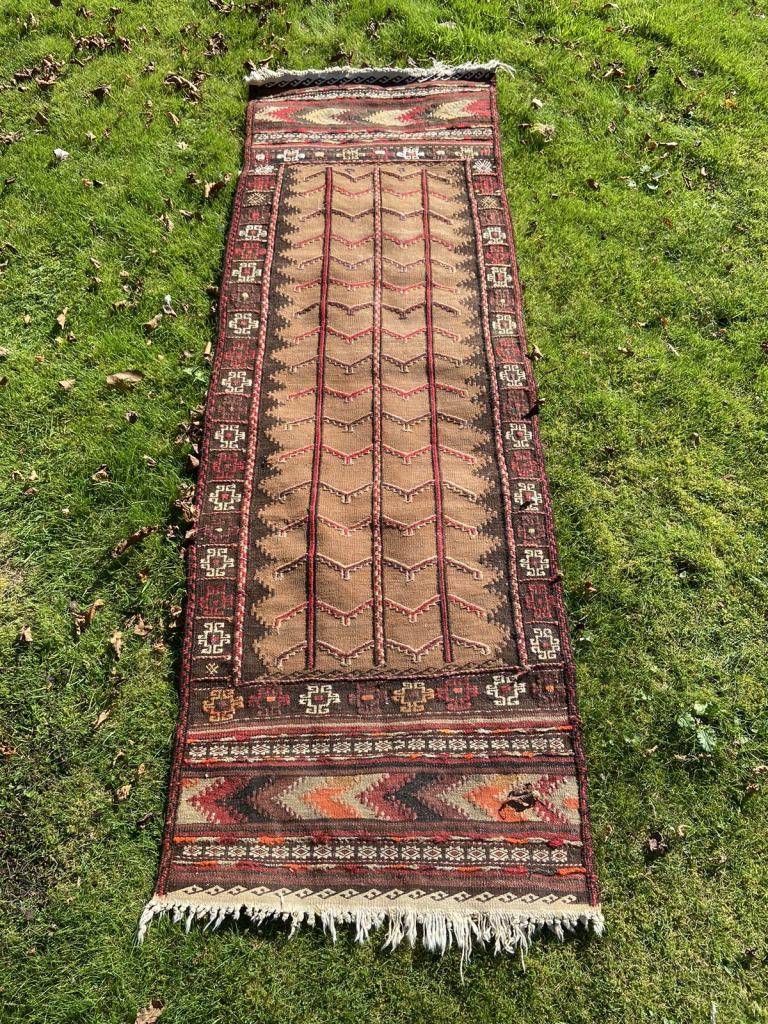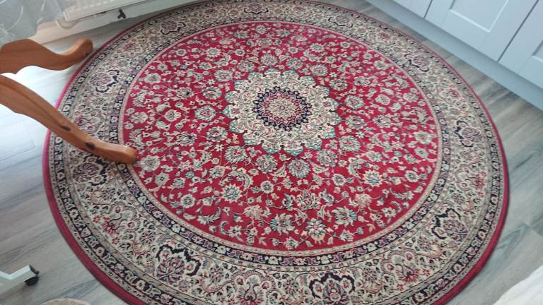 It’s in good condition but does show signs of use. It’s a good quality heavy rug.