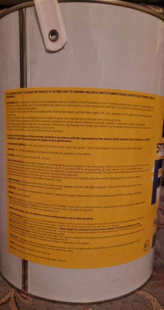 This flooring adhesive can be used on Vinyl flooring, fiber bonded carpets, synthetic grass carpets