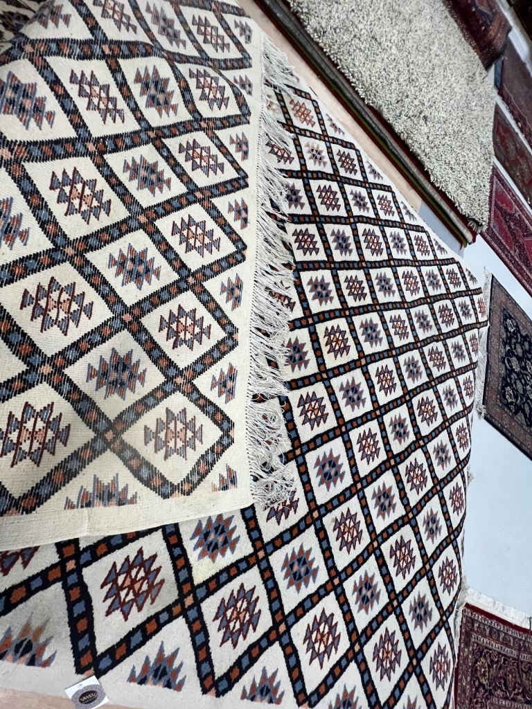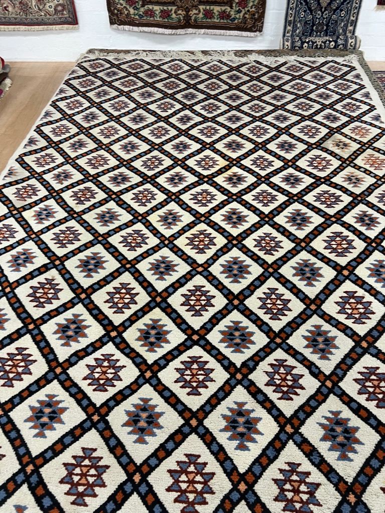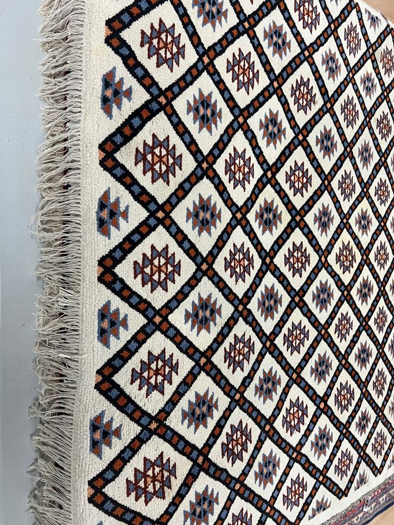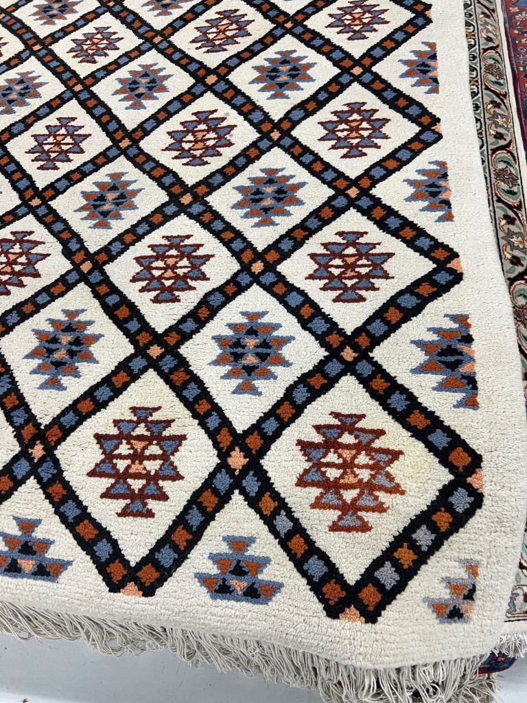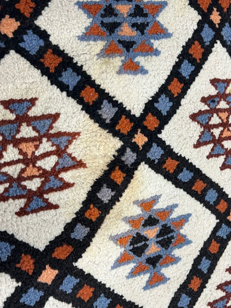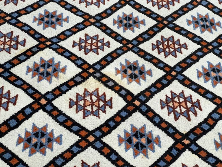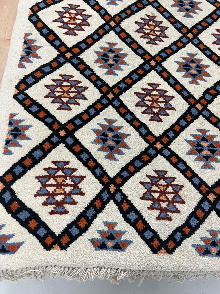 .this beautiful preowned vintage Berber wool rug in good used condition with some marks 195x285cm £550 VWR996 REDUCED TO CLEAR £250 AVAILABLE NOW from VINTAGE WOOL RUGS PERTH 11 cutlog vennel pH1 5Hy (old food bank warehouse). open Monday Thursday and Saturday 10.30am till 4pm