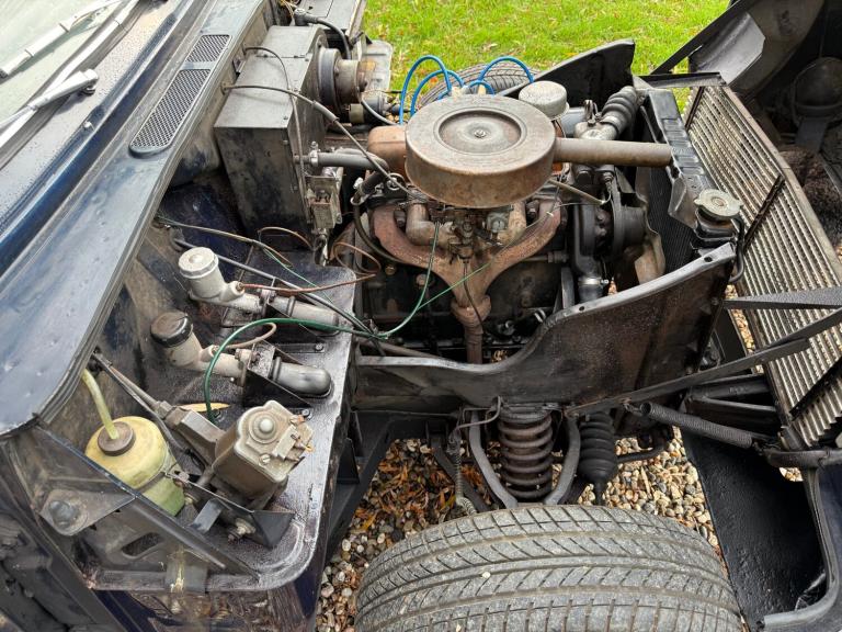 Seats are original , wood in good order , as is the headligning .The original steering wheel is in the boot , along with the original wheels and tyres.