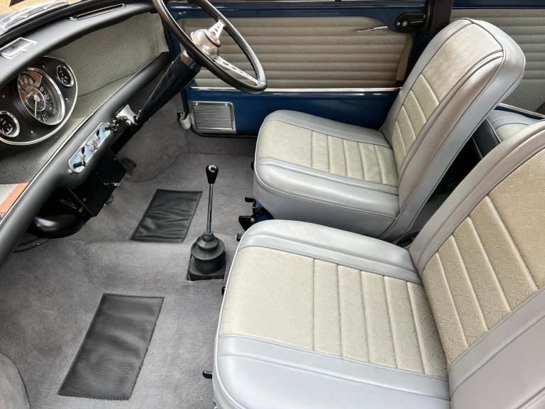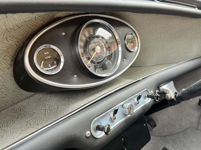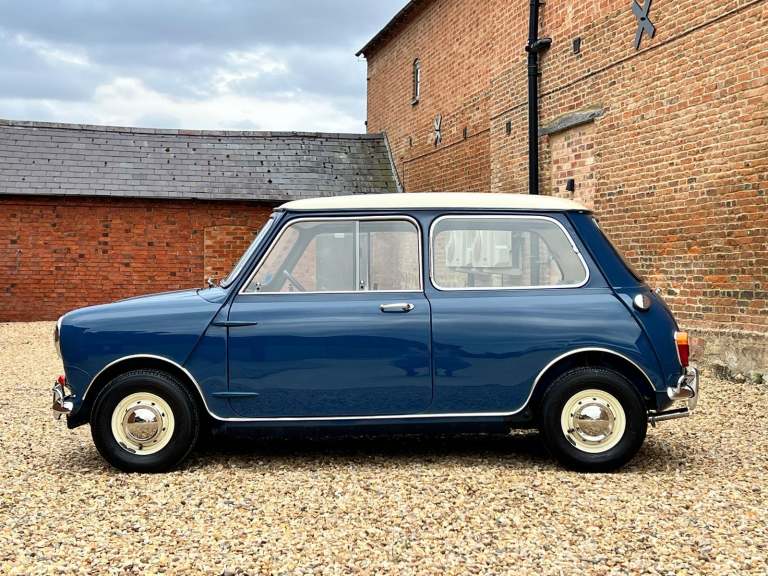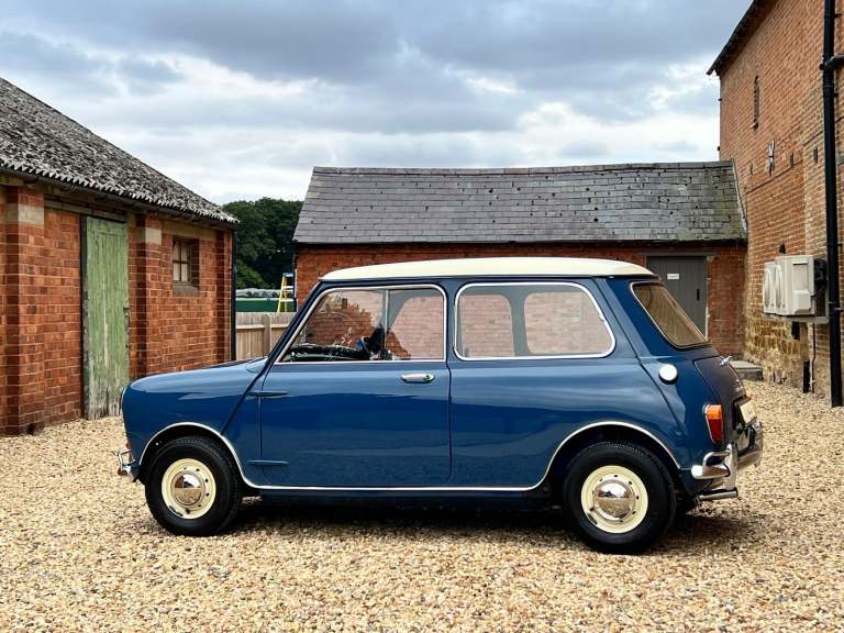 Finished in Island Blue with an Old English White roof and Grey and Silver Brocade upholstery, this delightful 1275S was supplied new on 1st April 1968 to Mr Hart of Southend-on-Sea by Stewart & Arden Ltd. of Essex. In 1973, Mr Hart moved to Cornwall taking his beloved Mini Cooper with him where it remained until purchased by dealers, Wheel Garage of Ashton, in 1977. They subsequently retailed the Mini to a Mr Lloyd of Porthleven who enjoyed it for a few years before storing it in his garage awaiting a bit of work. By 1991, it was obvious that the little Cooper wasn’t going to get the attention it deserved so, in December of that year, it was sold to Mike Wright who had known the car for around 10 years and was looking for a project after recently finishing another restoration. By this time, ‘UMM’ was looking a little sad and Mike commenced a full nut and bolt restoration. By 2000, he still hadn’t finished the project and agreed to sell it to a Mr Southcott of Fareham who continued the restoration until finished to a very good standard in 2004 (there is a full photographic record of this work in the history file). Mr Southcott used the car very lightly and carefully until 2009 when it was spotted by avid collector, Mr Brooker of Stratford Upon Avon, who was attracted by its wonderful condition. Sadly, Mr Brooker passed away a few years later and the Cooper joined Anthony Hamilton’s remarkable Private Collection.