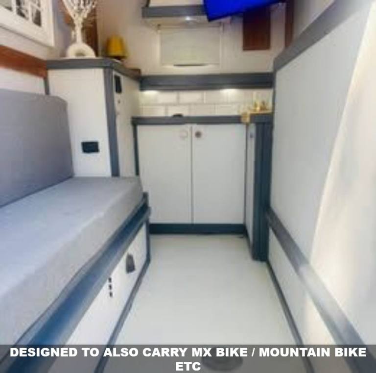 Here we have a converted Ifor Williams Horse box into a Sport sleeping / Moto x trailer. Will carry a Moto x Bike or couple mountain bikes Road bike. Sleeps 2 with comfy bed. Kitchen area that is still accesible while bed is up. Smev hob, gas stove and sink with running water, 12V 240V and Inverter. Solar panel to keep charged without plugging in. TV Mounted to roof with lead 4 i phone conection Diesel heater! Immaculate inside a unique affordable solution for weekends away combining with sport. All our vehicles over £3000 come with our 5 Star package! * Full service with new oil, oil filter, air filter and pollen filter, and brakes, lights and levels checked. * Minimum of 9 Months MOT or a will have a Brand new one! * 6 Month comprehensive parts and labour warranty F.O.C.! * Full valet prior to collection! * HPI Clear with PDF Report (unless clearly stated otherwise) Extended warranties available at competitive rates. Give us a call to make your next purchase a special purchase. FCA Regulated, Finance available Subject to status! 5 Day Driveaway insurance available at small cost (circa £30) to get you on the road sooner than you think. Secure any car with a small deposit. Airport/Train station collection service All our Part X to clear cars (under £3000) come with our Budget 4 star package! * Minimum of 5 Months MOT or a will have a Brand new one! * Lights and levels checked! * HPI Clear with PDF Report (unless stated) * 3 months Major mechanical parts warranty.IFOR WILLIAMS TRAILER CONVERTED TO SLEEP, TRANSPORT MOTO X BIKE / 2 MOUNTAIN BIKE , 12V 240V I NVERTER SOLAR , SMEV HOB AND SINK WITH GAS AND WATER, INSULATED WITH DIESEL HEATER FITTED,
