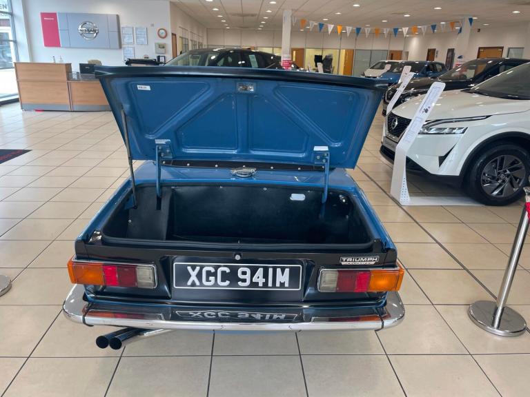 This Triumph 1974 TR6 registration number XGC941M repatriated in 1991 from the USA, In 1999 it was rebuilt on a California rust free chassis by Manvers Triumph and fitted with a 150BHP CP engine, correct specification gearbox with O/D in 3rd & 4th along with a recalibrated final drive. From 1999 to present this vehicle has an extensive detailed history of work completed a few to mention are, Alloy fuel tank, Bosch fuel pump ,Mk2, Alloy Wheels, Walnut Veneer Dash, Wood Rimmed Steering Wheel, Fuel Injection, Manual with Synchromesh