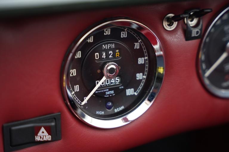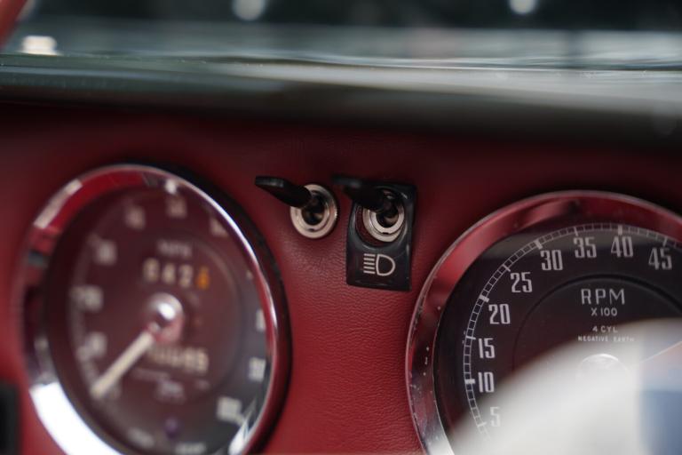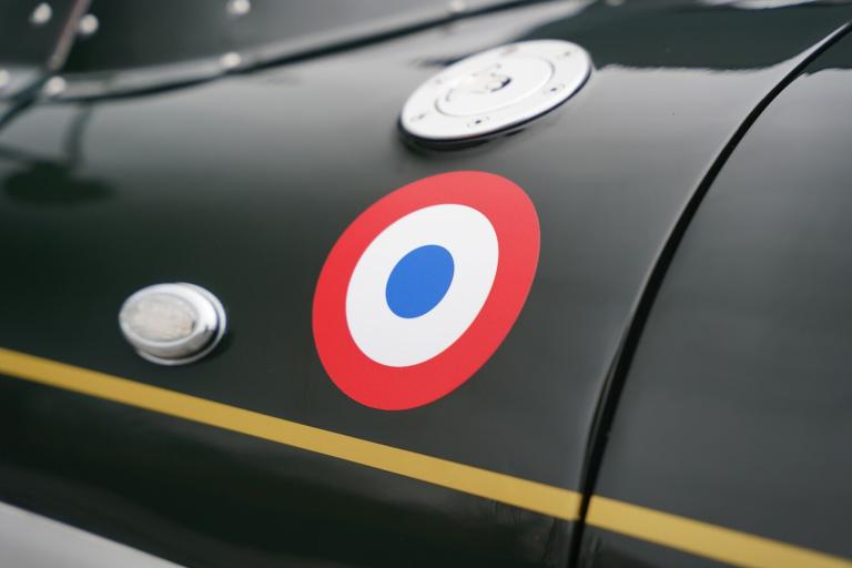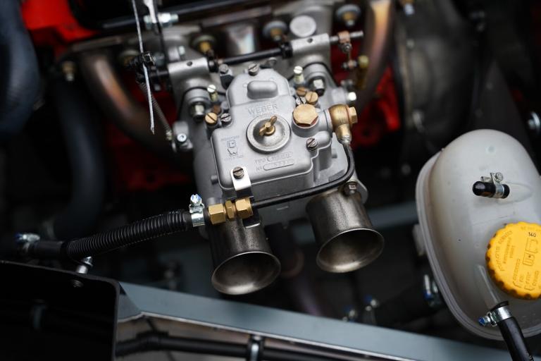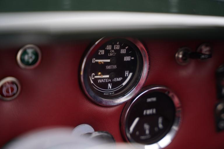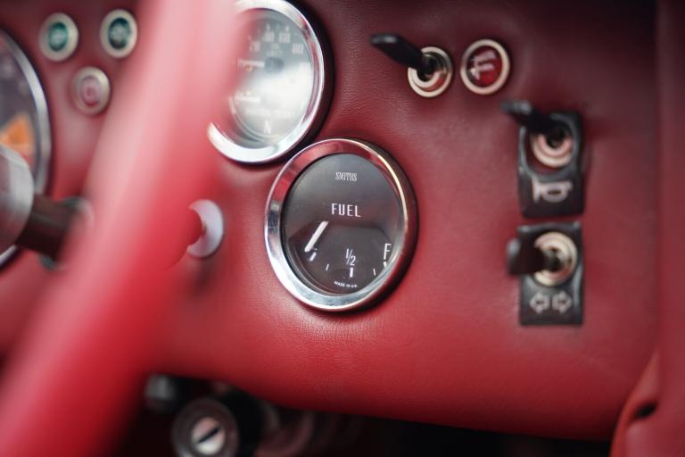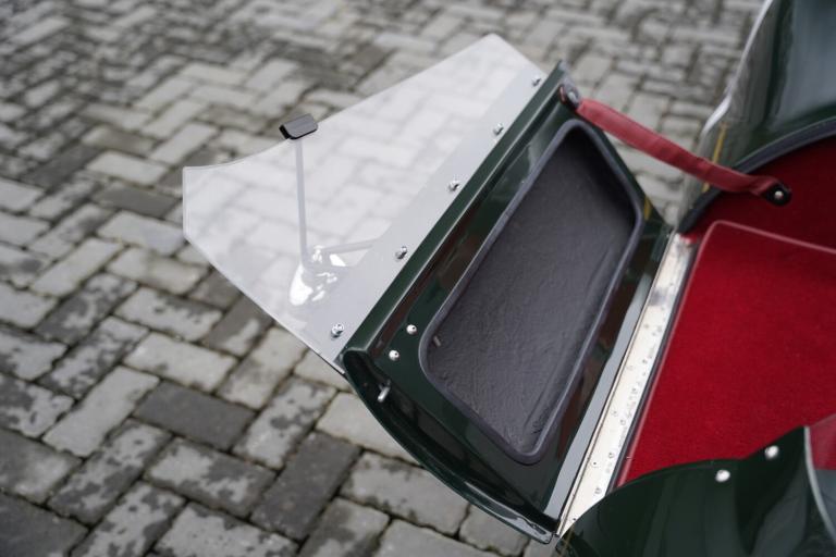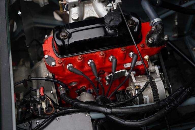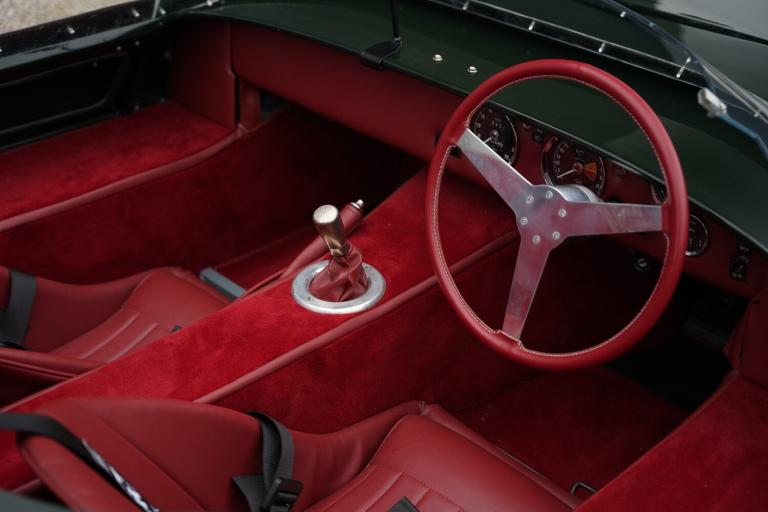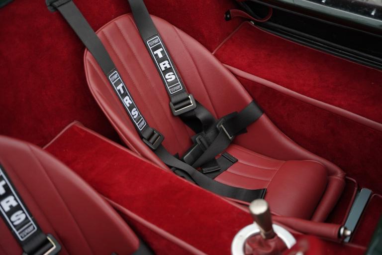 The interior provides a wonderful contrast, with a deep red leather trim and full carpet set. The slim steering wheel is trimmed in the same leather, with a white contrast stitch. The interior remains simple and features a basic gauge set and the switches required for the exterior lighting and equipment. A full tonneau is also supplied.