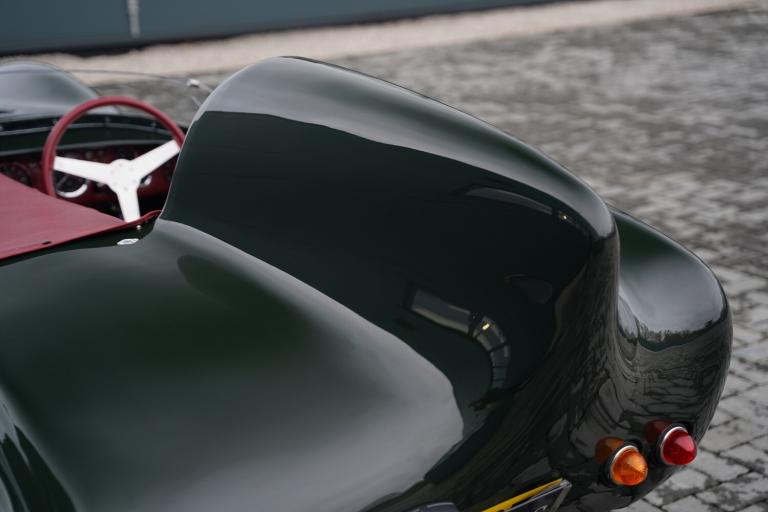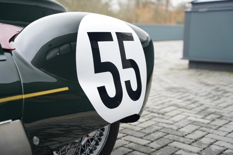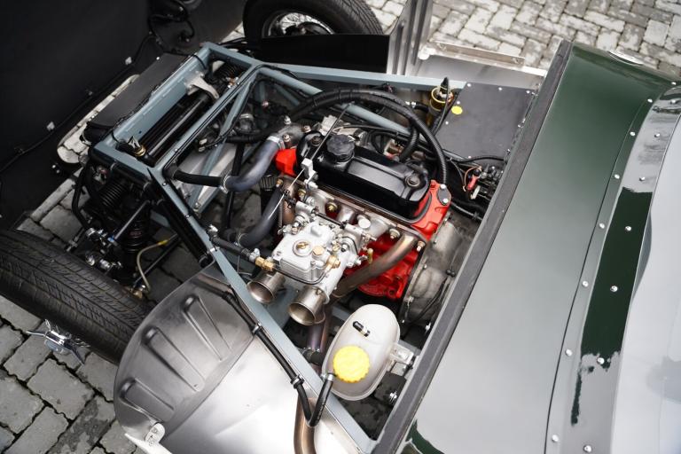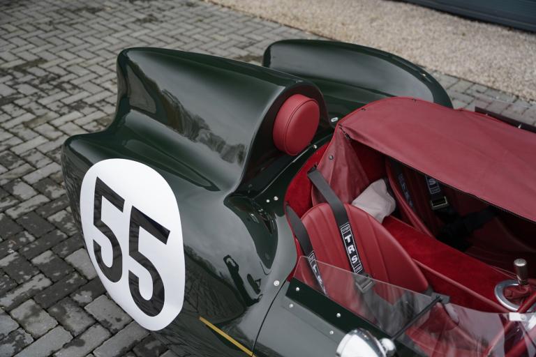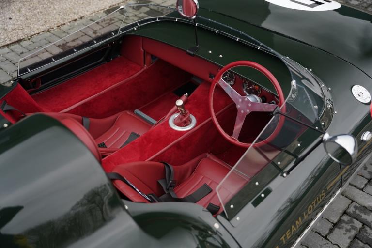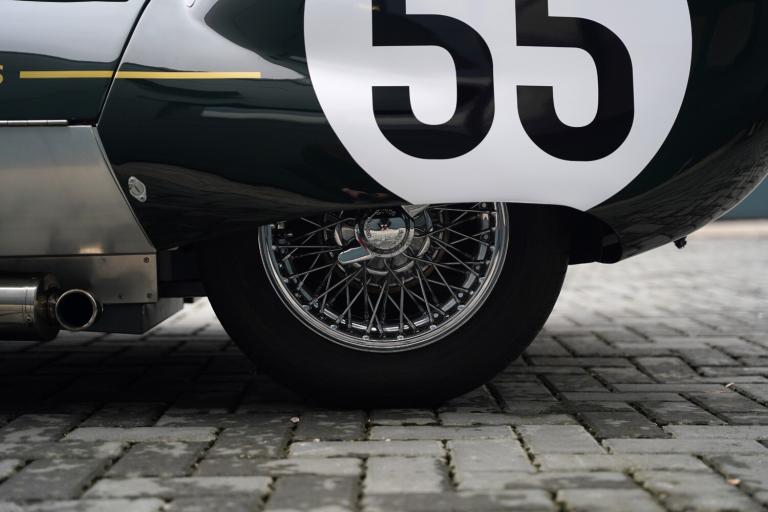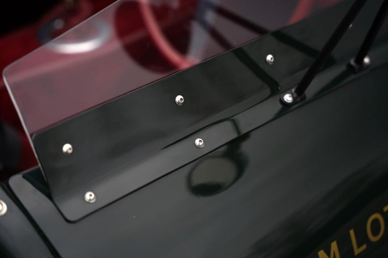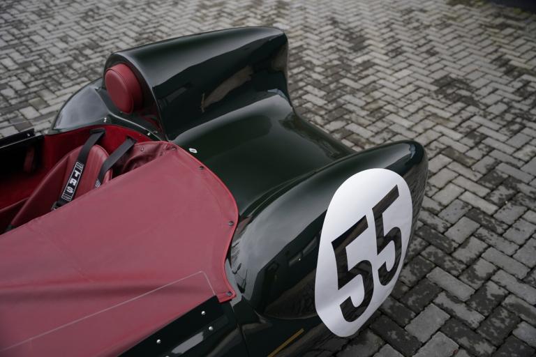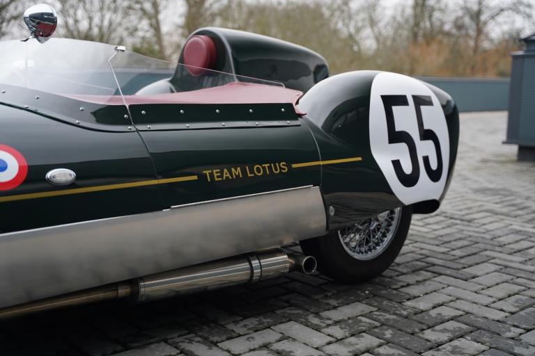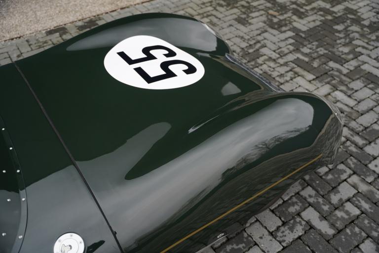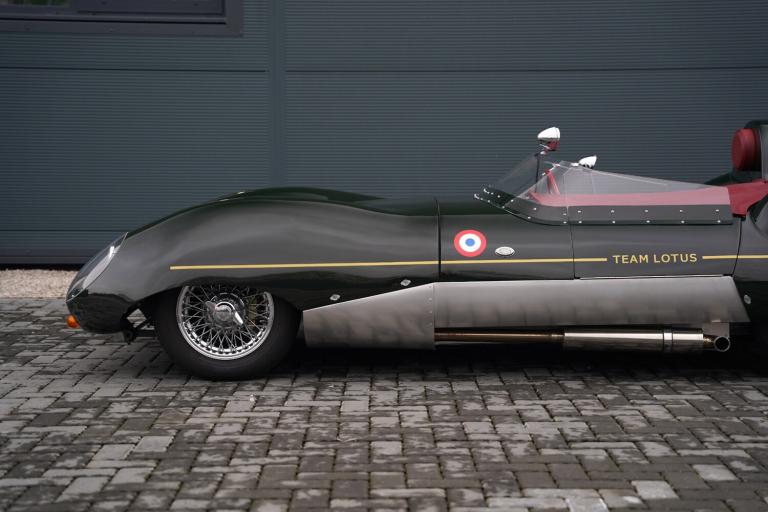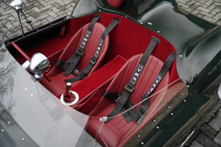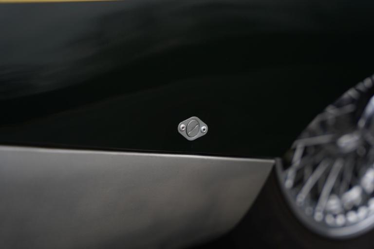 Finished in the timeless British Racing Green, the car features a very subtle livery inspired by the 1956 Le Mans works team entry, consisting of singular golden side strakes broken up by Team Lotus text. Three prominent roundels featuring the number 55 complete the aesthetics. The lower side panels present in bare aluminium, with the nearside acting as a heat shield for the side exit exhaust. Multi-spoke chrome wire wheels are housed within the bodywork completing the car's sleek looks.