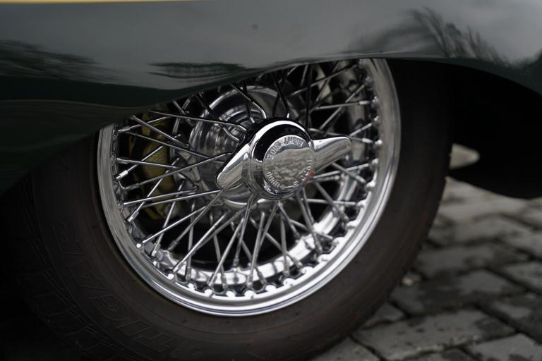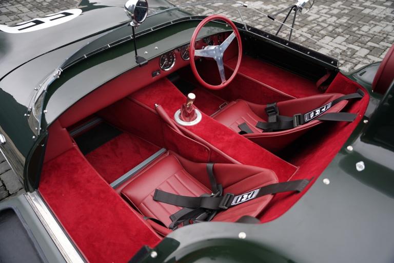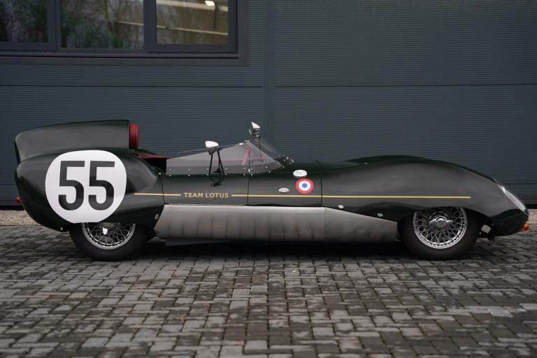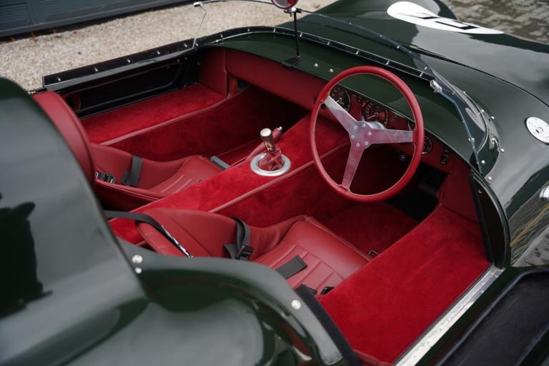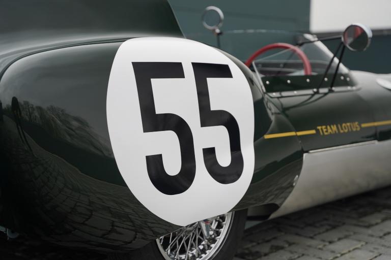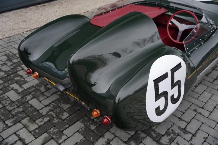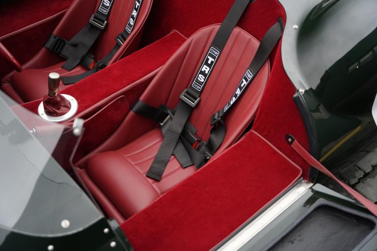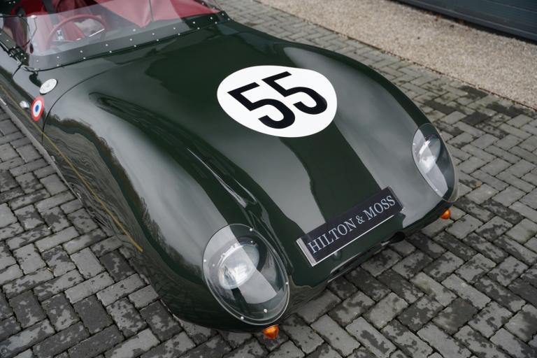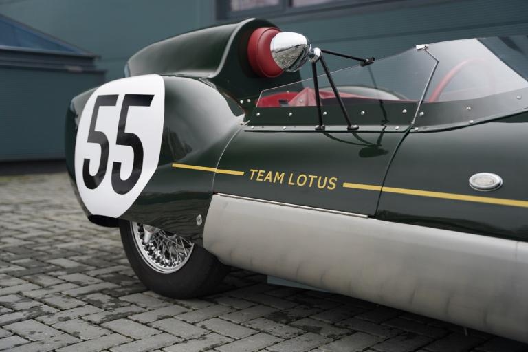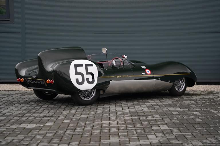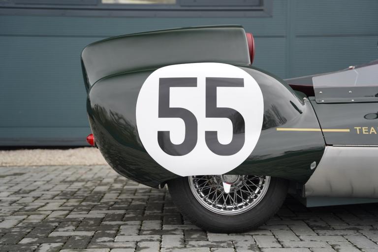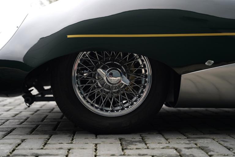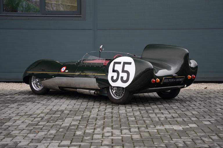Finished in the timeless British Racing Green, the car features a very subtle livery inspired by the 1956 Le Mans works team entry, consisting of singular golden side strakes broken up by Team Lotus text. Three prominent roundels featuring the number 55 complete the aesthetics. The lower side panels present in bare aluminium, with the nearside acting as a heat shield for the side exit exhaust. Multi-spoke chrome wire wheels are housed within the bodywork completing the car's sleek looks.