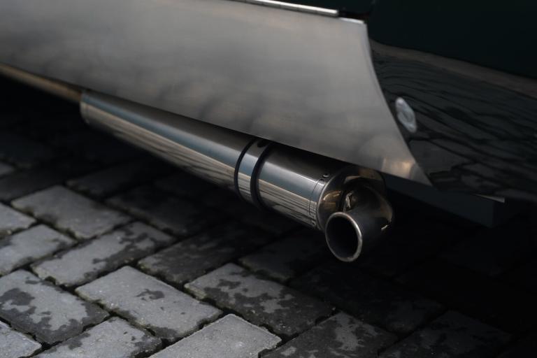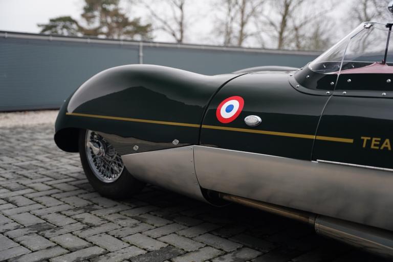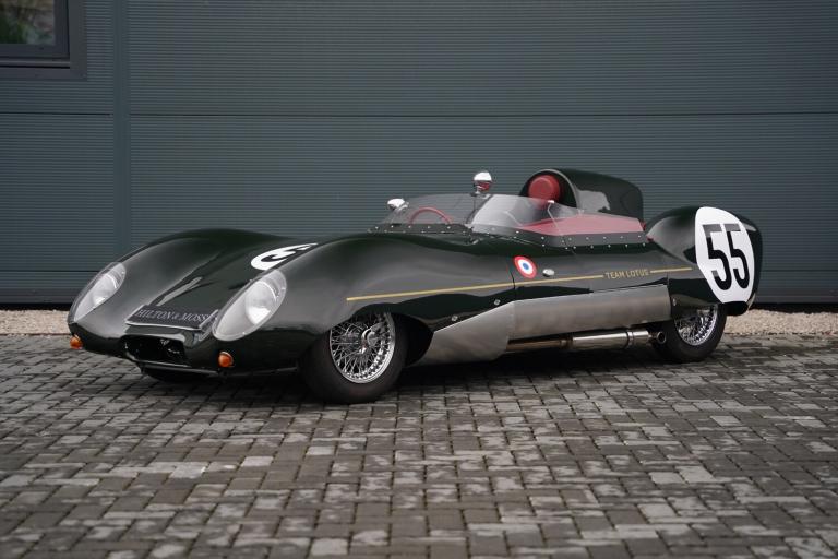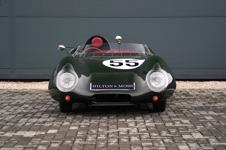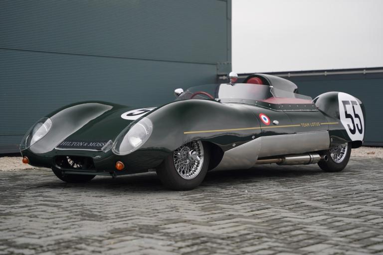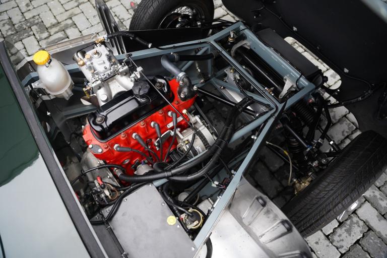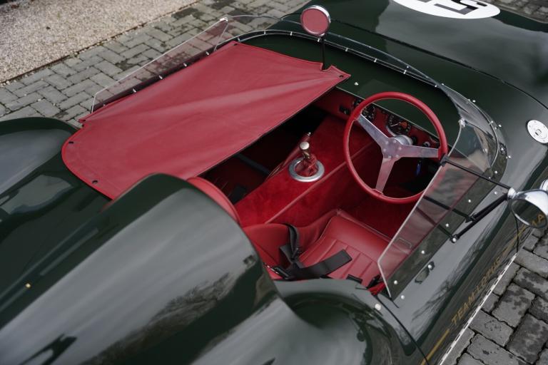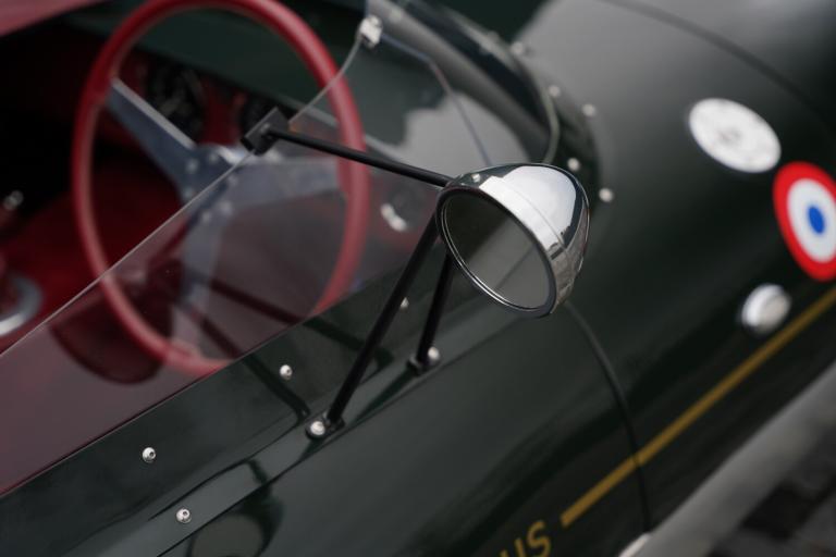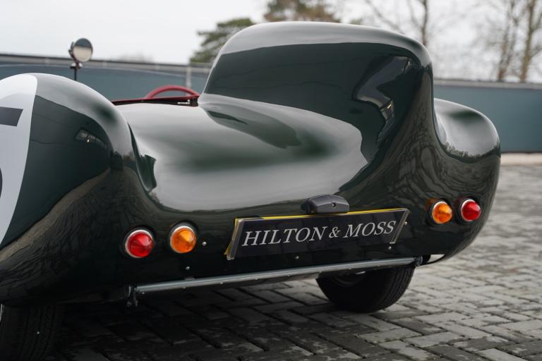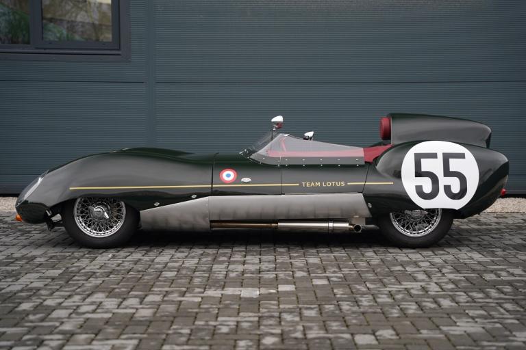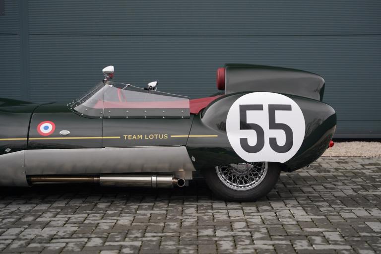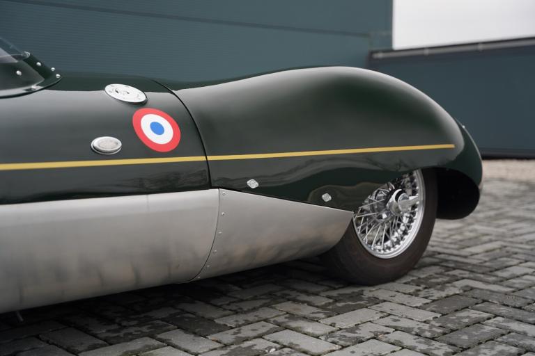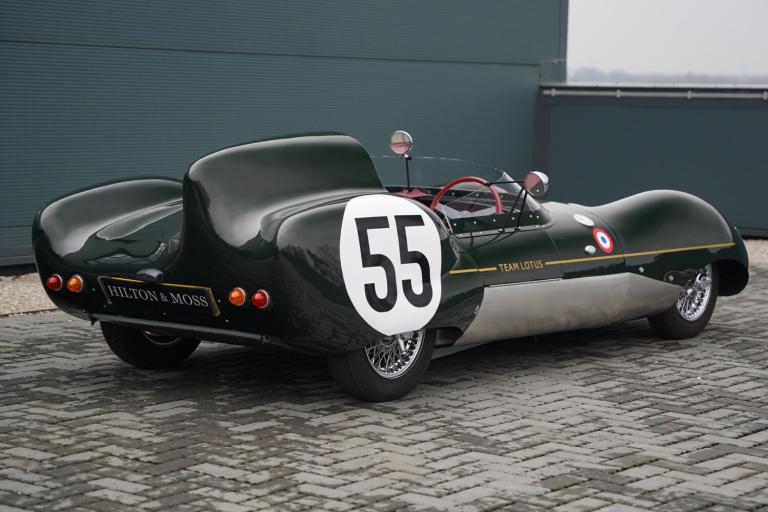 Finished in the timeless British Racing Green, the car features a very subtle livery inspired by the 1956 Le Mans works team entry, consisting of singular golden side strakes broken up by Team Lotus text. Three prominent roundels featuring the number 55 complete the aesthetics. The lower side panels present in bare aluminium, with the nearside acting as a heat shield for the side exit exhaust. Multi-spoke chrome wire wheels are housed within the bodywork completing the car's sleek looks.