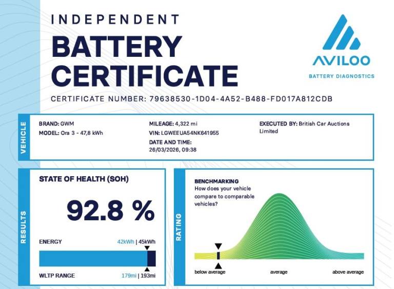 BATTERY CHECK GRADE A+2 KEYS+1 OWNER FROM NEW+MEDIA+PARK CONTROL+DIGITAL DASH+CLIMATE+BLUETOOTH+APPS+NAV+DAB+18" ALLOYS+CRUISE+HPI CLEAR+VOSA MOT HISTORY, CLEAN +GREAT DRIVE+GOOD MPG, FULL DEALER FACILITIES+FINANCE ARRANGED, PART EXCHANGE WELCOME, RAC CHECKED+The car is in very good condition in and out . Bodywork and interior clean for age and mileage . Interior is clean and tyres good ,Engine and gearbox in good order. This 2024 GWM ORA 03 PURE+ presents an exceptional opportunity with its remarkably low mileage of just 4000 miles, having had only one owner since new. This electric vehicle boasts a 48 kWh battery offering a maximum range of 193 miles, and benefits from an MOT valid until March 2027. Key features include Adaptive Cruise Control, a 360 Surround Camera for effortless parking, and Auto Air Conditioning for a comfortable cabin environment. Connectivity is seamless with Apple CarPlay and Android Auto integration, while Blindspot Detection provides an extra layer of safety. The GWM ORA 03 PURE+ offers convenient charging, with a full charge at home taking approximately 6 hours and 40 minutes using a 7kW charger, and a rapid charge to 80% achievable in just 51 minutes at a public charging station. These specifications, combined with its advanced features and pristine condition, position this electric car as a superior choice for those seeking an efficient and well equipped vehicle. WE AS A COMPANY PRIDE OURSELVES IN GIVING THE BEST POSSIBLE SERVICE AS OUR 1000,S OF GREAT REVIEWS SHOW , SEE OUR TESTIMONIALS PAGE AT WWW.FISHMOTORS.CO.UK TODAY ! IF YOU REQUIRE MORE PICTURES AND AN IN DEPTH VIDEO PLEASE CONTACT OUR FRIENDLY SALES TEAM WHO WILL BE MORE THAN HAPPY TO HELP YOU . CONTACT 01204 387600 , [Email address removed. Click Email button to contact us.] AND FACEBOOK MESSANGER . NATIONWIDE DEILVERIES AVAILABLE ON REQUEST , PLEASE CONTACT US FOR MORE INFORMATION . PERSONAL VIDEO AVAILABLE FOR ANY CAR BY REQUEST - FISH MOTORS BURY NEW ROAD BOLTON BL2 2BD. 01204387600 , ALL FORMS OF PAYMENT ACCEPTED, FINANCE ARRANGED LOW APR, CLICK OUR WEBSITE LINK FOR MORE CHOICE ! ALL OUR CARS AND INFORMATION ARE CHECKED HOWEVER PLEASE NOTE INPUT ERRORS CAN OCCUR AND IT IS IMPORTANT YOU CHECK WITH A MEMBER OF STAFF THE MILEAGE , CONDITION AND SPECIFICATION OF THE CAR BEFORE PURCHASE . .10.25in Instrument Cluster - Light Adjust, 18in Alloy Wheels, 360 Surround Camera, 6 Speakers, 6:4 Foldable Rear Seat Backrest, ABS - Anti-Lock Braking, Active Air Intake Grille, Adaptive Cruise Control - ACC, Adjustable Energy Recovery Level, AID Kit, Airbags - Centre, Anti-Theft Alarm, Apple Carplay - Android Auto, Auto Air Conditioning, Auto Emergency Braking with Pedestrian and Cyclist Detection -AEB-AEBP-AEBB, Auto Hold, Automatic Demisting - Inside, Automatic Unlock when Collision, AUX Power Socket, AV - MP5 - DAB, Battery Intelligent Protection Alarm System, Blindspot Detection, Bluetooth, Braking - Low Speed Emergency, Child Lock - Manual, Child Presence Detection, Daytime Running Light, DDM - Drowsy Driving Monitoring, Door Handles - Body Coloured, Door Lock - Automatic, Door Open Warning, Drive Mode Select, Drive Mode Select - FWD - Front Wheel Drive, Driver Seat - 6-Way Electric Adjust, Drivers and Front Passengers Airbags with Passengers Airbag Deactivation Switch, e-Call, EBD - Electronic Brake Force Distribution, Electric Antiglare ISRVM, Electric Power Steering, Electric Safety Protection of Vehicle, Electronic Gear Shift, Electronic Stability Control System - Car Body, Emergency Lane Keeping, EPB - Electrical Park Brake, Face ID, FCW - Front Collision Warning, FOTA - Firmware Over The Air System, Front Passenger Seat 4-Way Electric, Front Side Airbags and Curtain Airbags, Front Suspension - MacPherson, GPS Navigation, Green Glass, Guide-me-home Lighting, Headlights - Automatic, Headrest - Rear Middle, High Beam Assist, HIll Assist, Infotaintment - 10.25in, Intelligent Cruise Control, Intelligent Evade, Intelligent Temperature Control System, Intelligent Turning Control, ISOFIX, Junction Assist - AEB-JA, Keyless Entry - Driver Side, Lane Change Assist, Lane Departure Warning, Lane Keep Assist, LED High-Mounted Braking Light, Moving Object Detection, OSRVM - Electric Folding - Heated - Turning Indicator, RCW - Rear Collision Warning, Rear Central Armrest with Cupholder, Rear Disc Brake, Rear Fog Light, Rear Parking Sensors, Rear Suspension - Vertical Arm Torsion Beam, Rear Traffic Cross Alert and Brake, Remote Control, Rollover Prevention Function, Roof Handles, SCM - Second Collision Mechanism, Seat Belt - Front with Pretenionser - Pretensioned End Piece - Load Limiter - CLT, Seat Belt - Rear 2 Sides - Pretensioner - Load Limiter, Seat Belt - Unfastened Warning - Front and Rear, Single Pedal Control, Smart Key - x2, Smart Quick Start, Speed