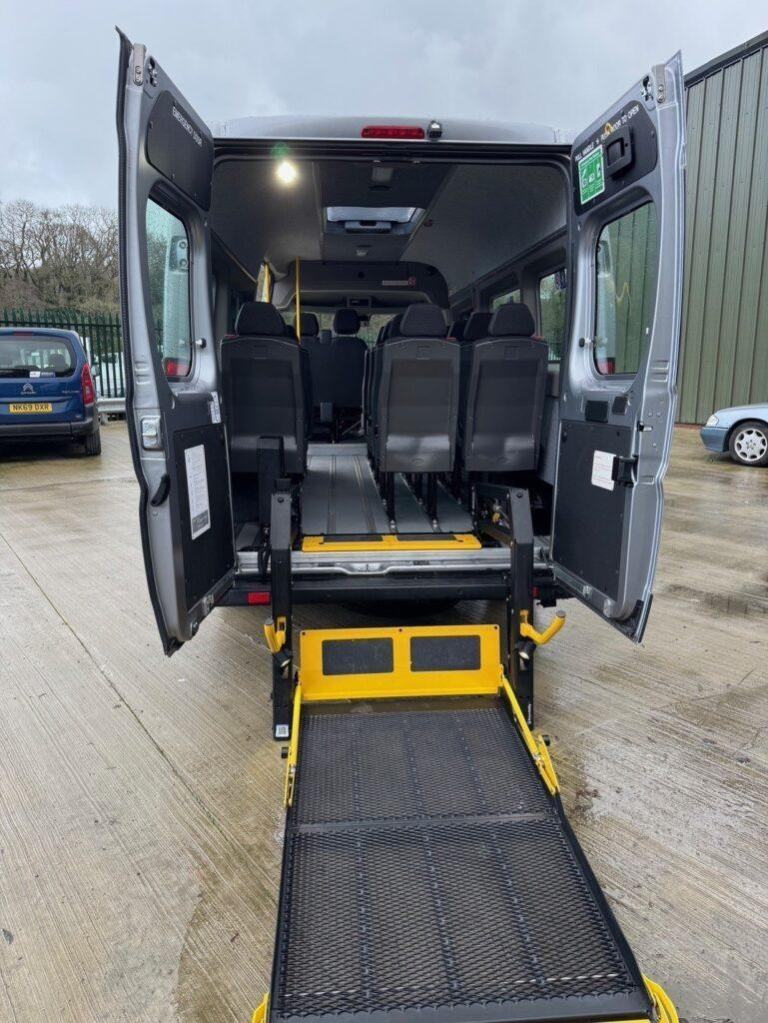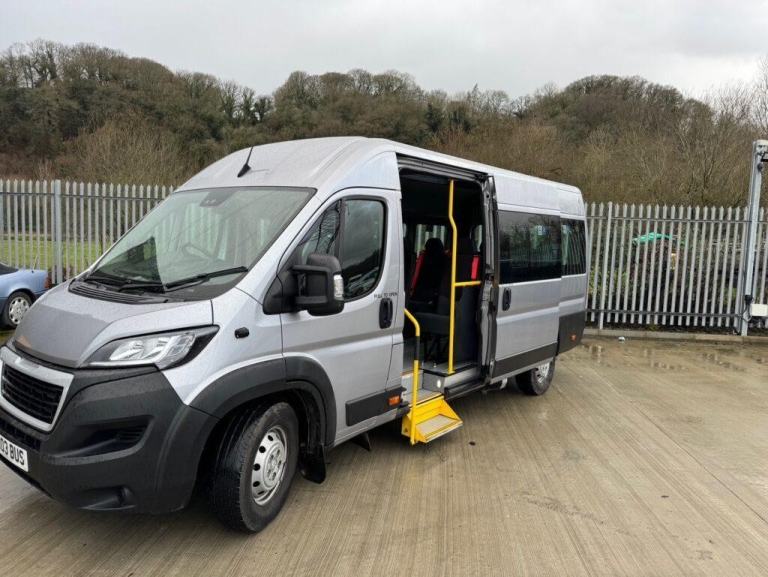 EX DEMONSTRATOR - Peugeot Boxer 2.0HDi 130 6 speed manual, L4 H2, 2024 registered, finished in silver. This Minibus Lite Spec 5 features 17 seats with integral all-age seat belts, 13 removable seats create space for a wheelchair passenger, inboard passenger lift, overhead locker, durable flooring, fully carpeted interior, no D1 licence required (drive it on a car licence). This minibus will come with a brand new MOT, fully serviced, 6 months RAC Warranty and 12 months Roadside Assistance, fully valeted. Prices show excludes VAT which will be added at the prevailing rate. "Bus" Number plate not included.