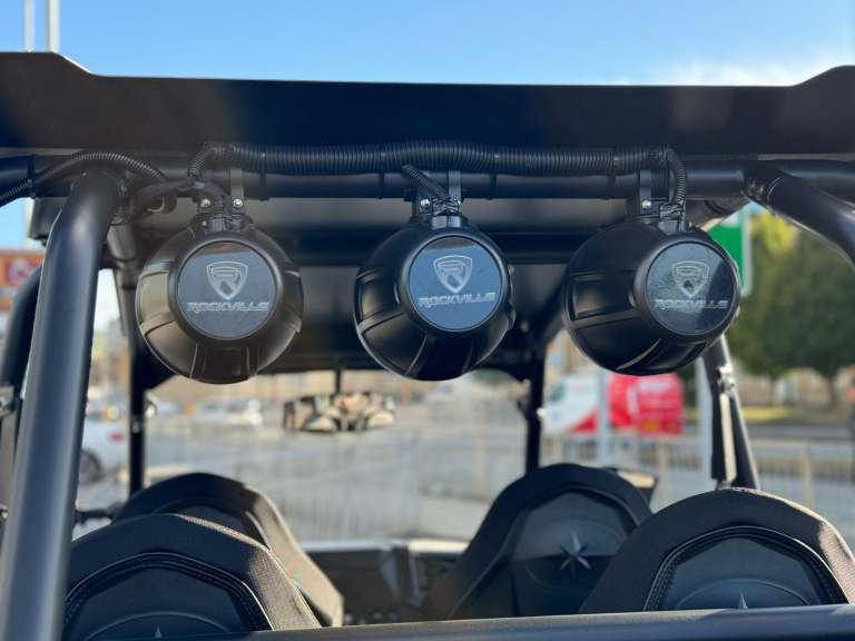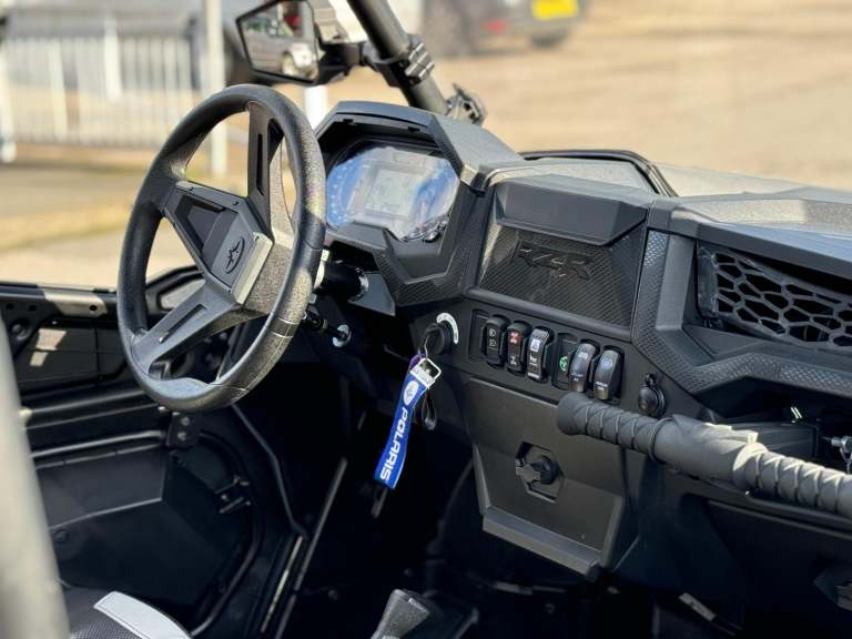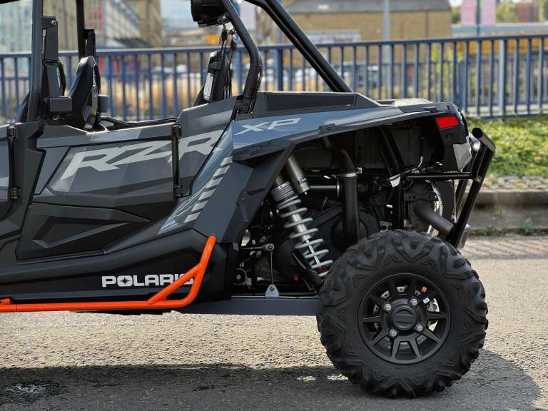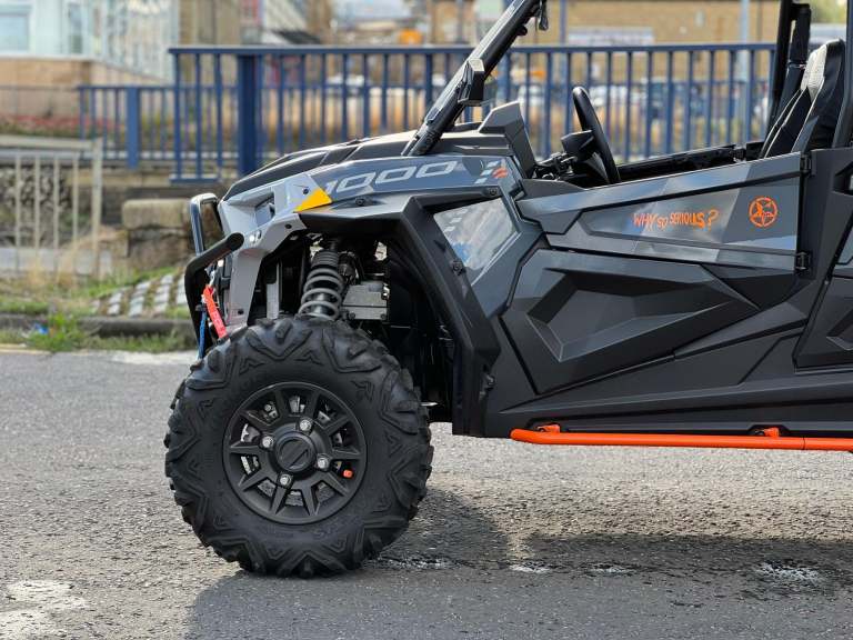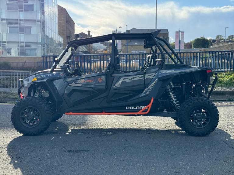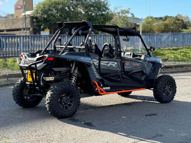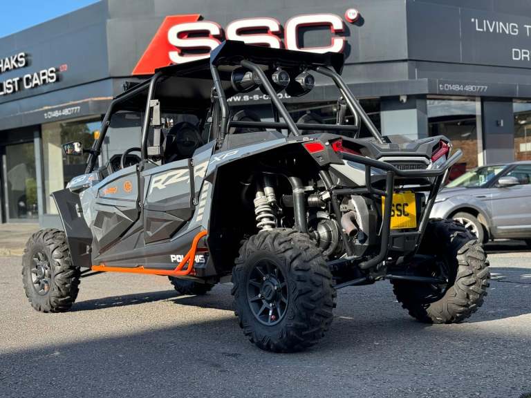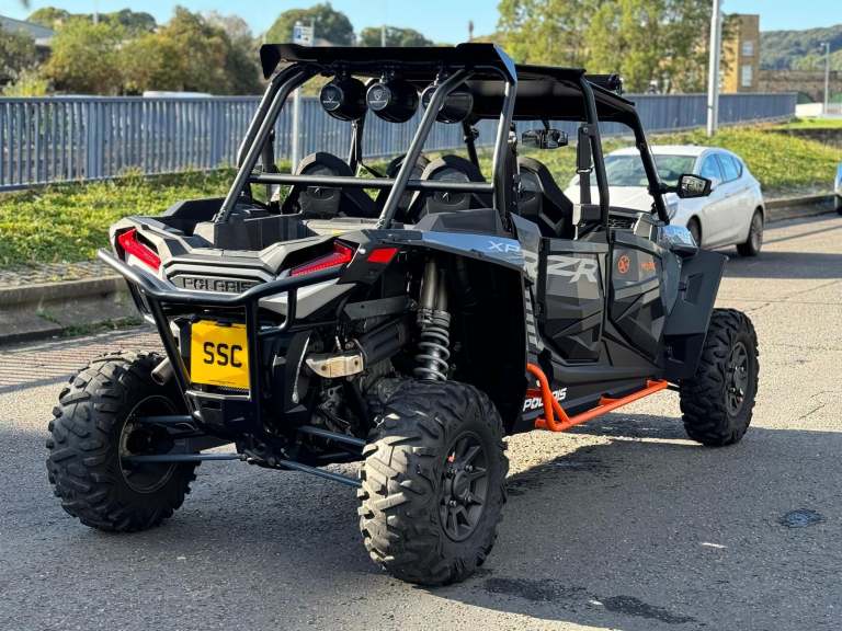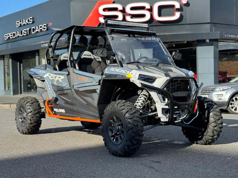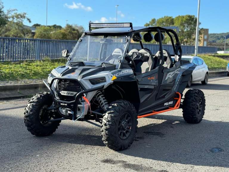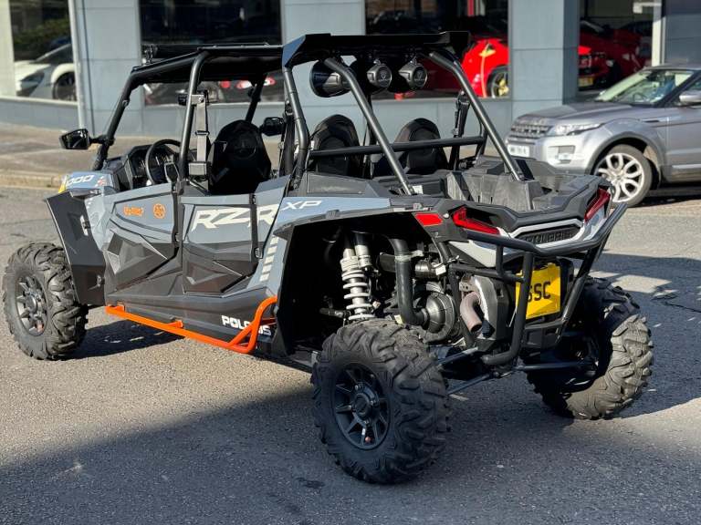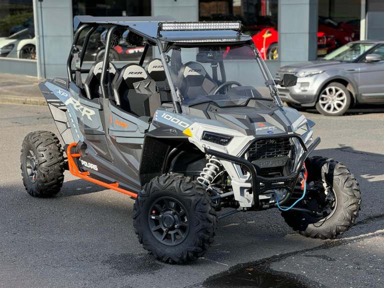 Stunning Polaris RZR 1000CC 4 Seater Buggy Finished In Grey. Fantastic Spec Inc: Front Bars, Rear Bars, Upgraded Walker Evans Suspension, LED Roof Light Bar, Rockville Audio Triple Speaker Sound System Bluetooth, Winch/Tow Rope, Underglow Lights, Roof Cover, Maxxis Tyres, Wing Mirrors, Rear View Mirror, Storage Cubby, Horn.