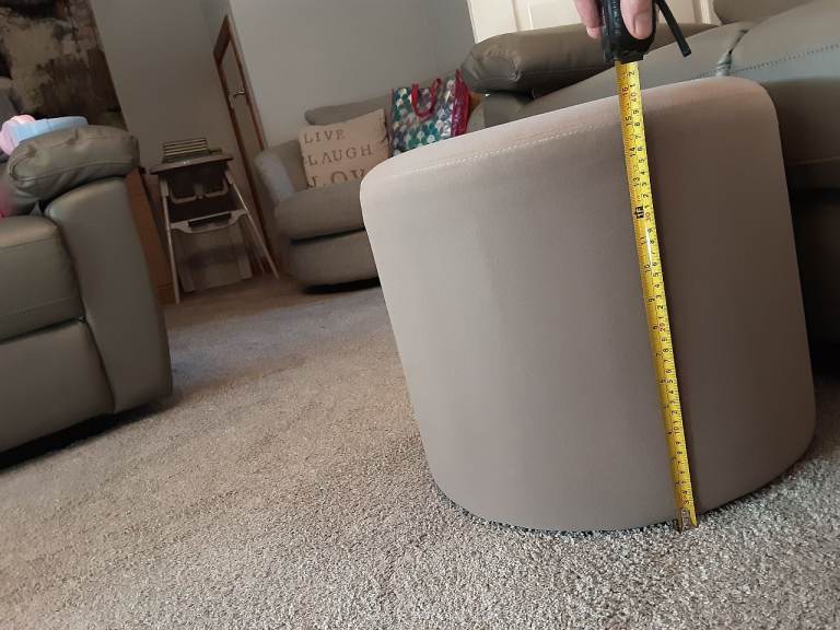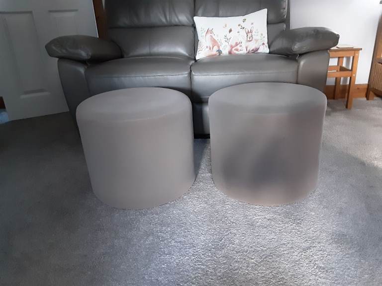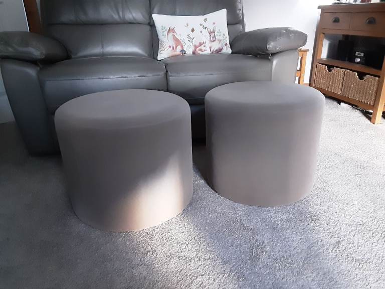 2 footstools pouffes originally from asda furniture. Approx 39 cm high and 46cm across. Cushioned under a suede style fabric. Great for spare seating or foot rest. Bought recliner sofas so not required. Good condition with minimal blemishes. Price is for both items together. Collection prefered from Colwick area.
