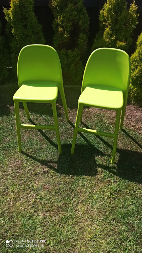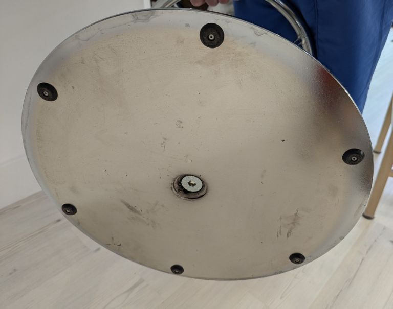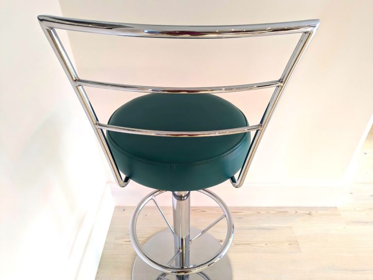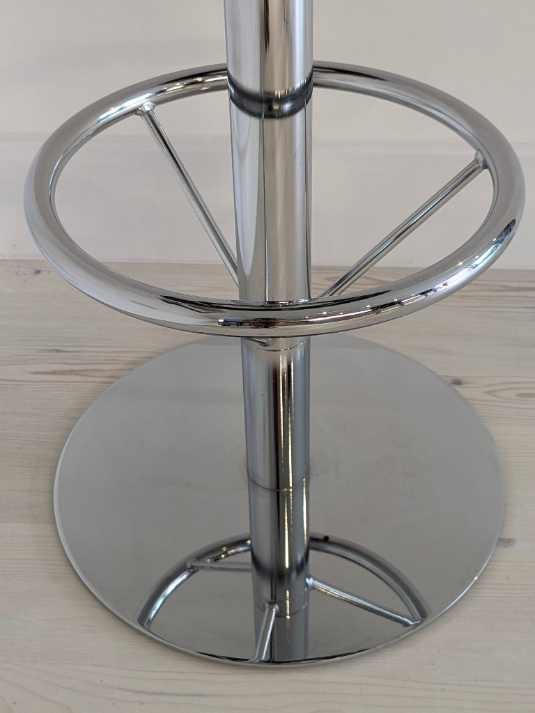 All bar stools are in excellent condition. There are some very slight blemishes on the chrome and small scuffs on the rubber feet (see photos). From a smoke and pet free home.
