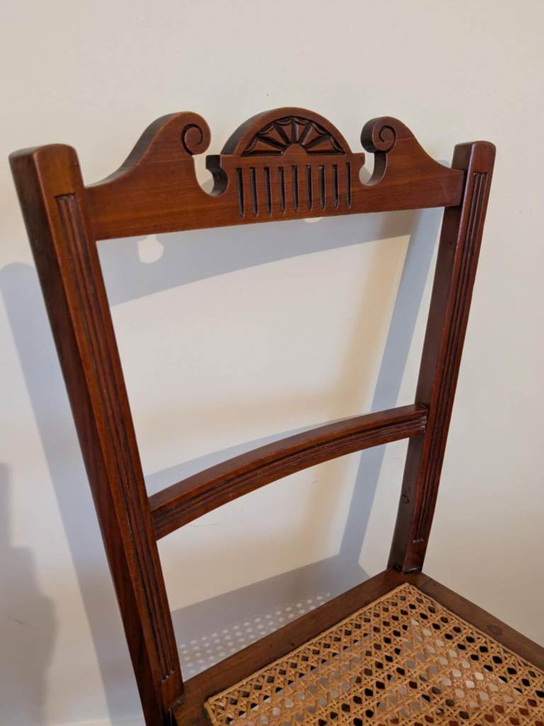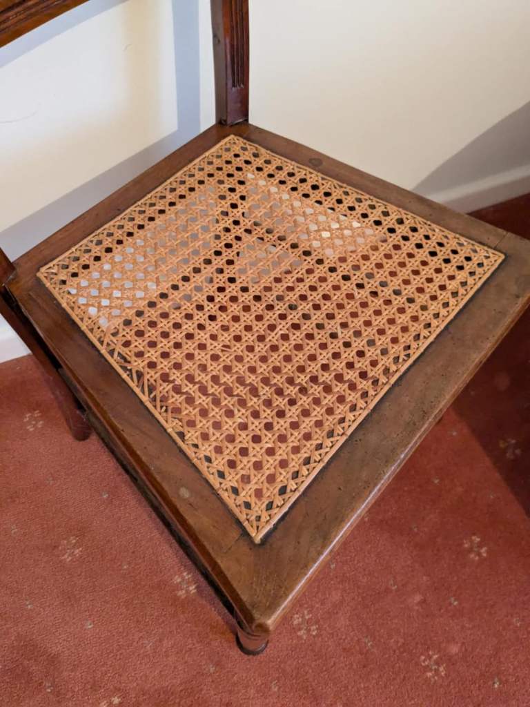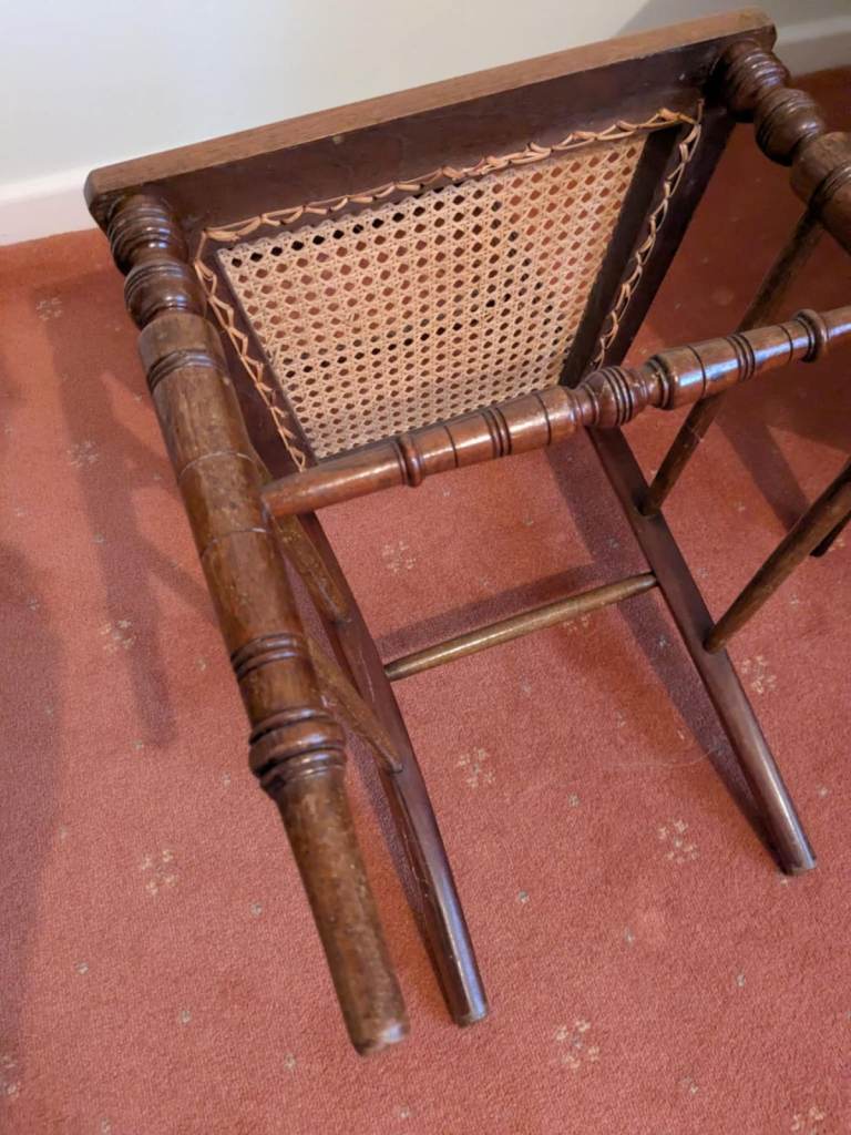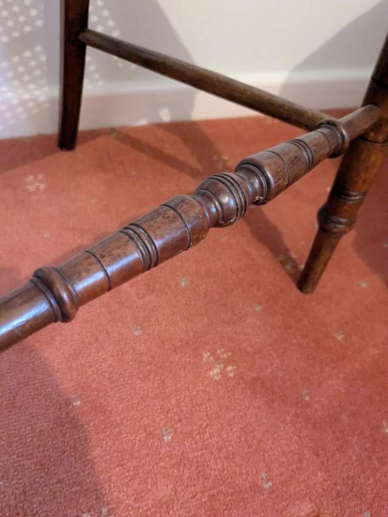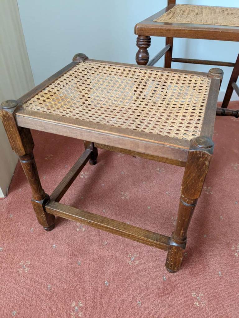 Antique Chair & Matching Footstool. All weaving is in tact and the chair is in great condition. Chair Measures 85h x 43d x 40w cm. Seat height 43h cm. Stool Measures 36 x 36h x 30d cm. £45 for both. Collection Lincoln LN2