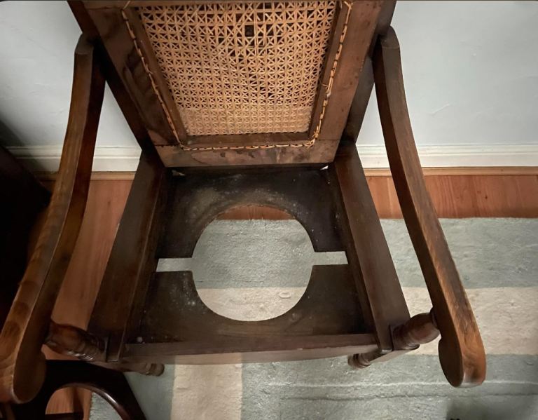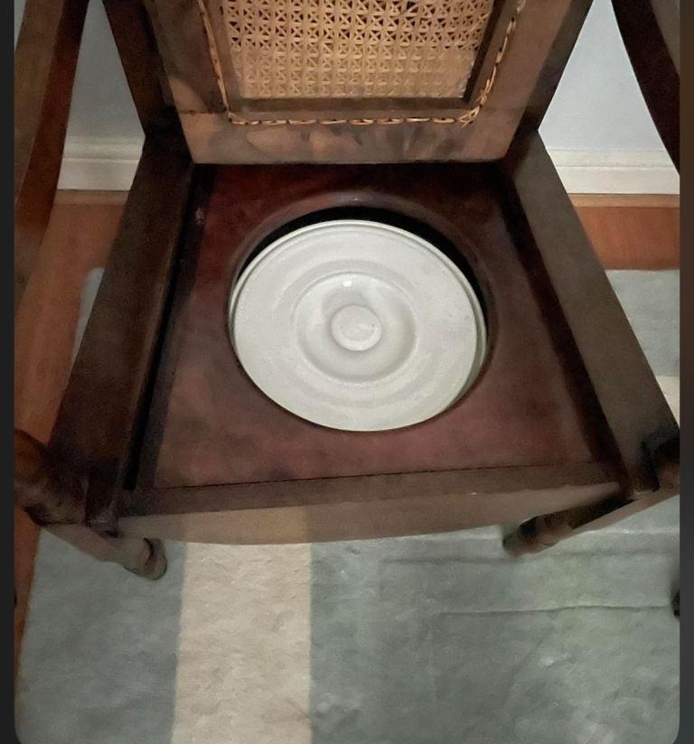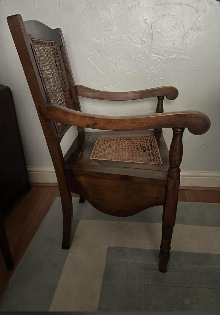 It is believed to be from around 1900-1920 this antique commode chair.
