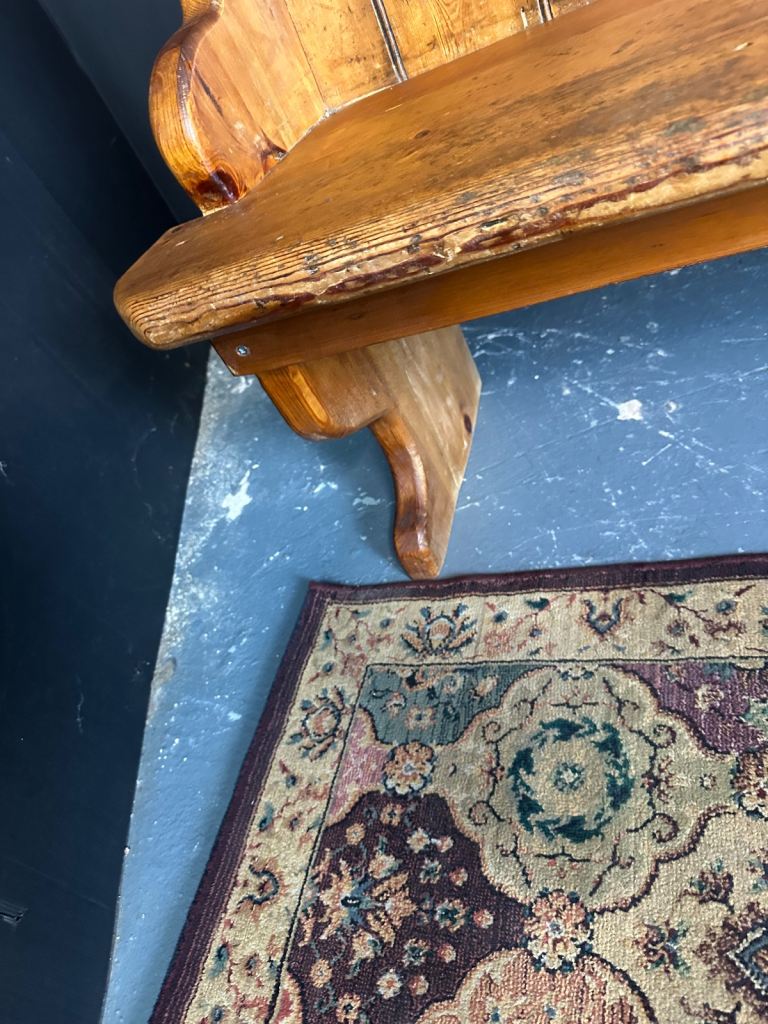 An Antique Pine Looking little pew / settle seat. What a honest little thing. I love how it’s like it’s just been put together in someone’s shed. Each sides a slightly different width on the seat sides. Is a perfect size for a little hallway to put your wellies on