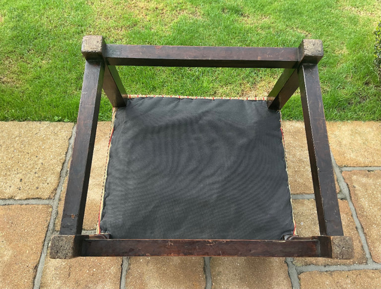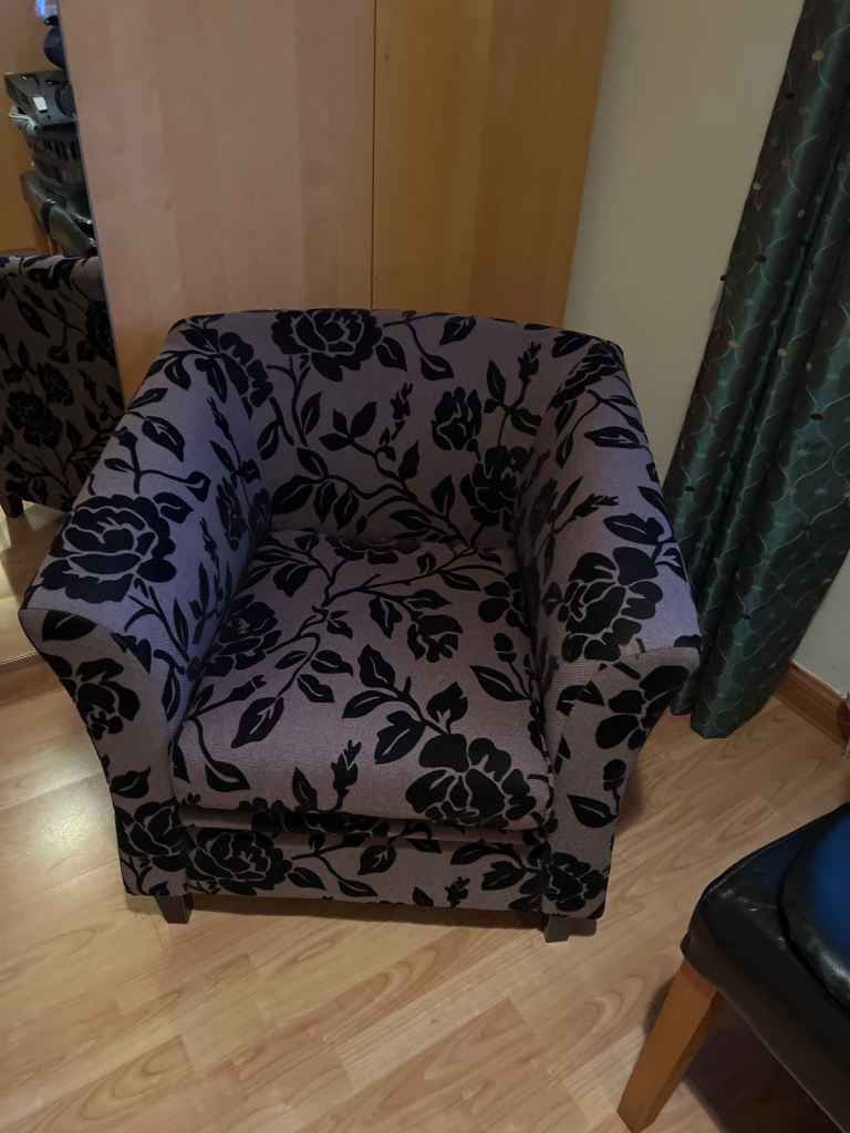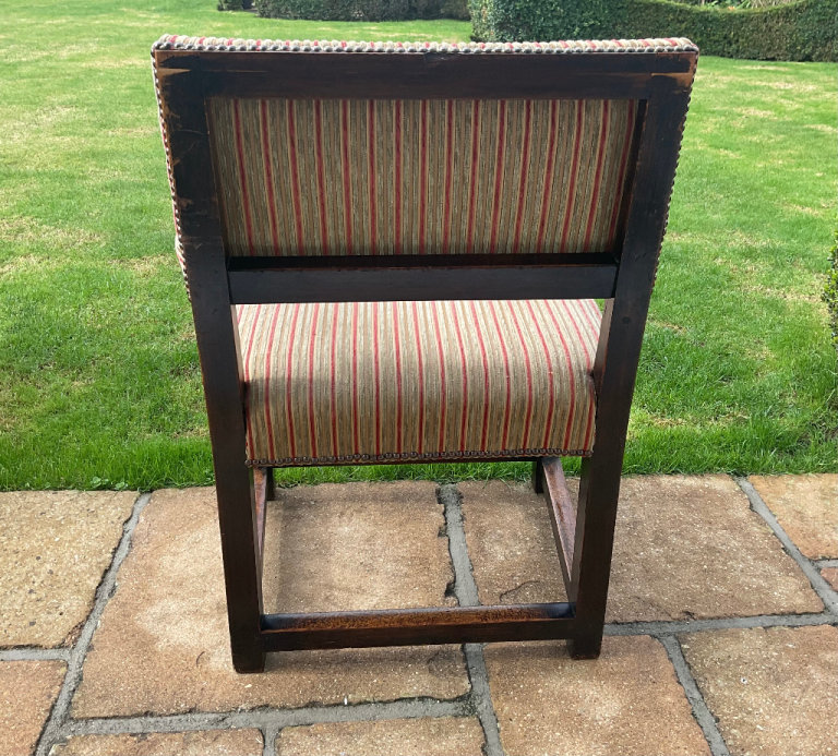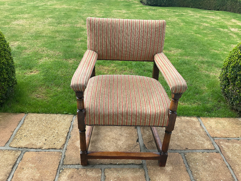 This well made over 100 year old chair is in marvellous condition, although would benefit from polishing up, is very useable. Muted autumn colours fabric in good condition and strongly studded. Chairs are not made like this anymore! Made from Oak or Elm. Can deliver within BH postcode. Seat from floor 20”. Height 36.5”.Width arm to arm 26.5”. Seat area 19.5x19.5”. Great value for money and will last forever!