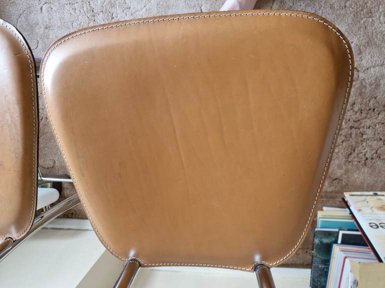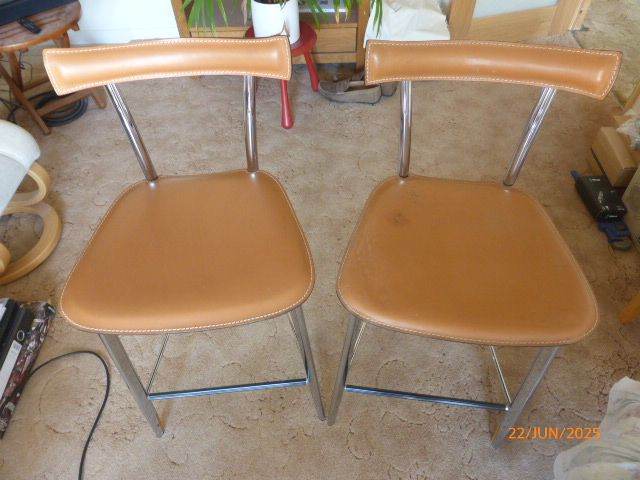 A pair of Arrben bar stools, nice clean condition apart from 1 seat pad has some marks and scuffs, see last image. Chrome overall nice condition but some slight rust spots. Price per pair.