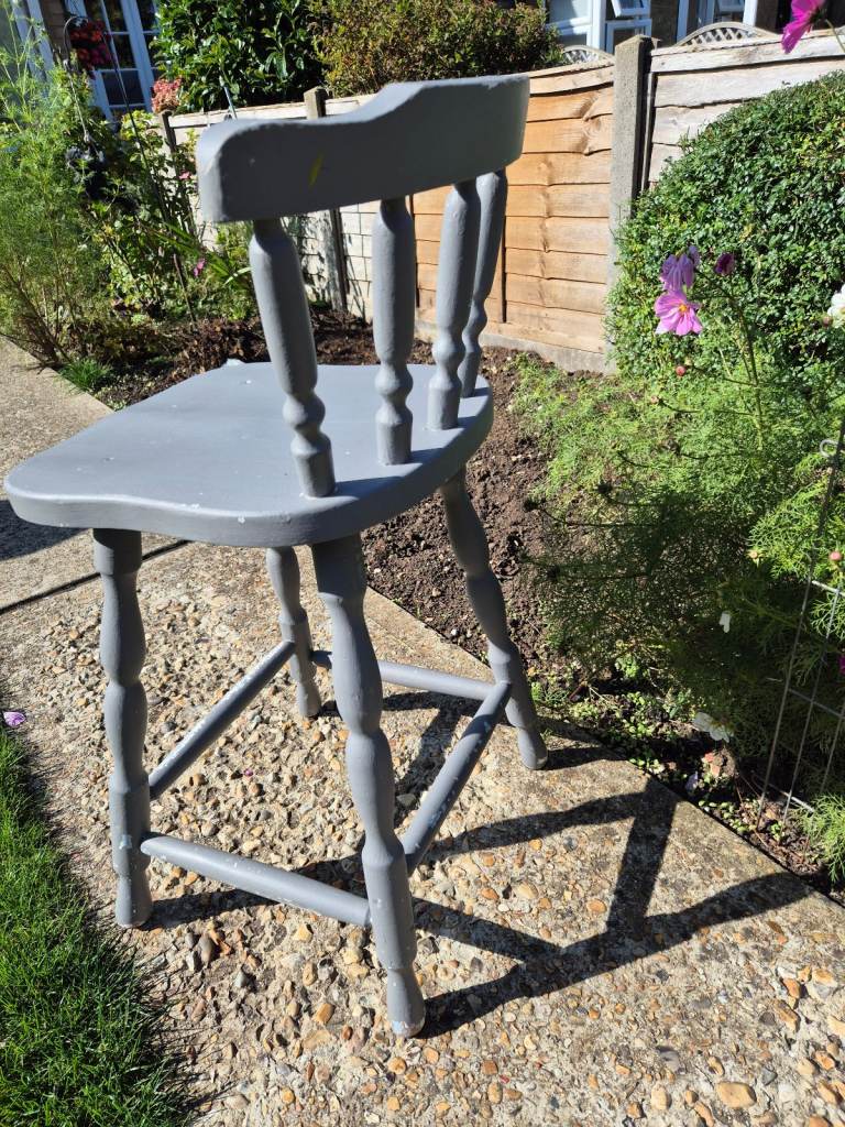 A tired upcycled bar Stool in need of a repaint or stripped back to wood.