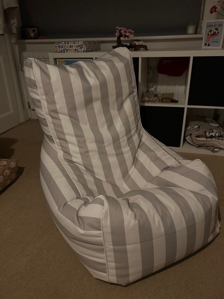 Grey and white bean bag, deciding to sell as I have no room for it now.