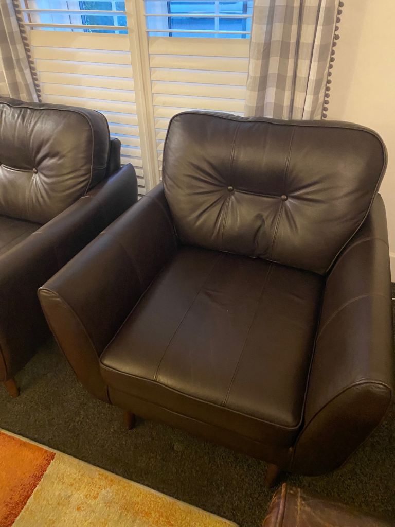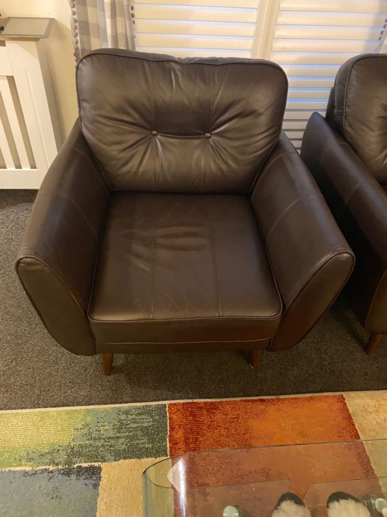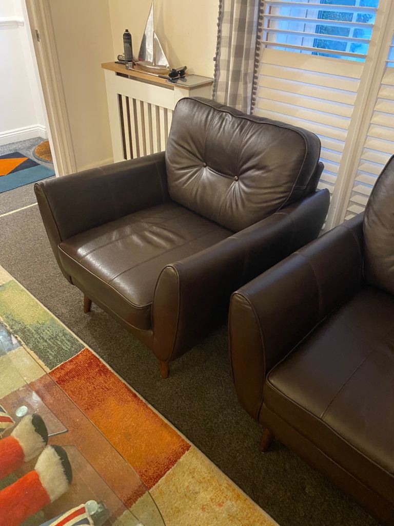 Pair beautiful matching soft leather chair excellent condition Collection springbourne would swop 4 nice big smart tv or iPhone 🤷
