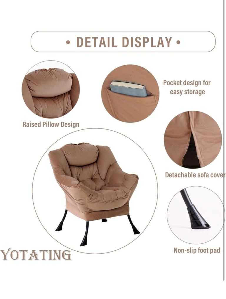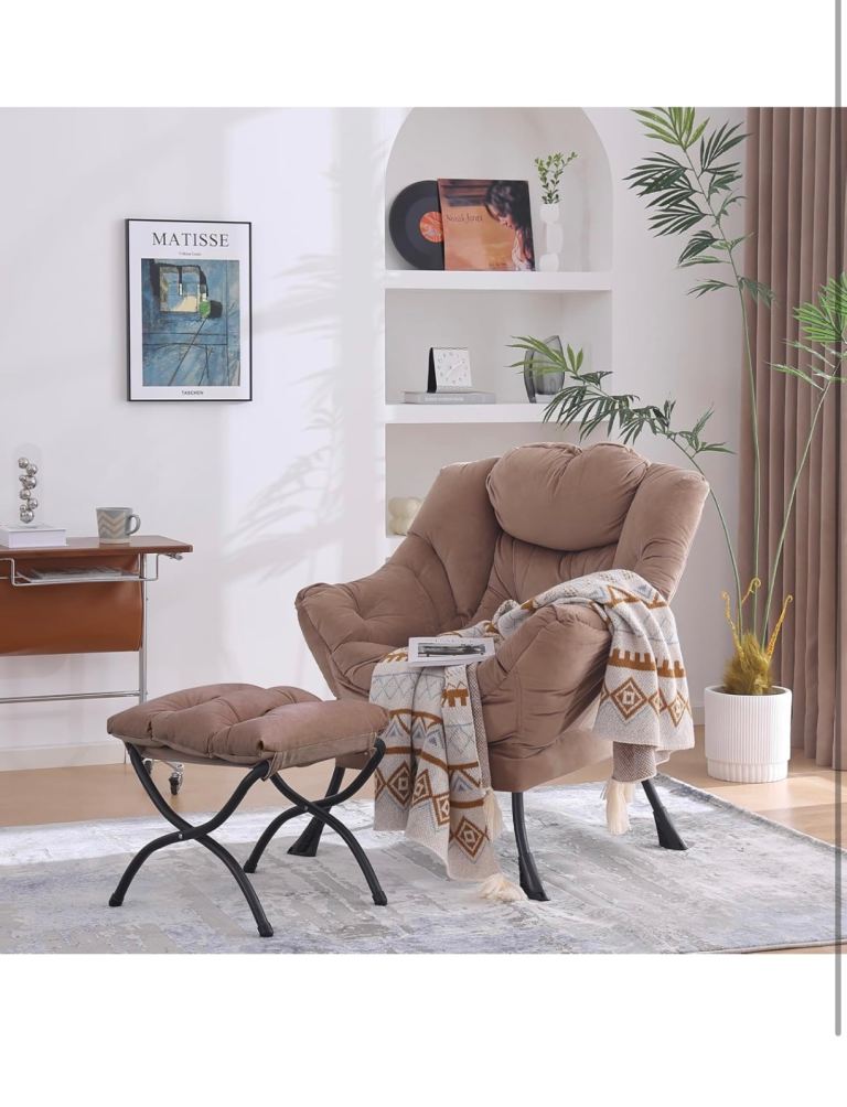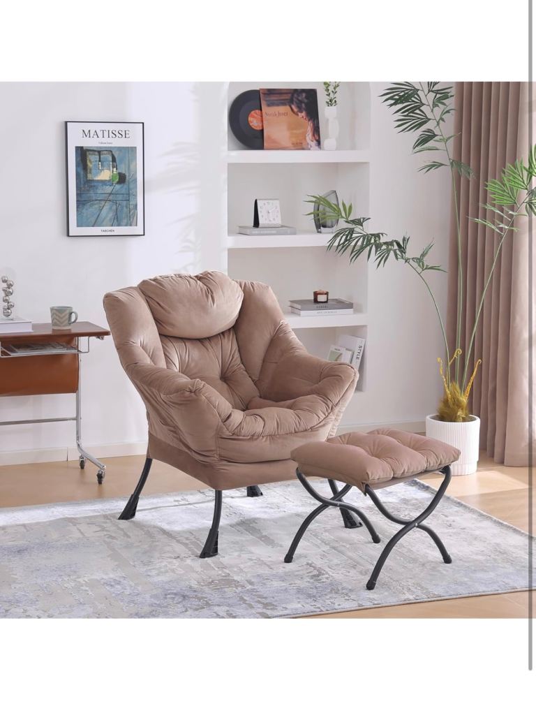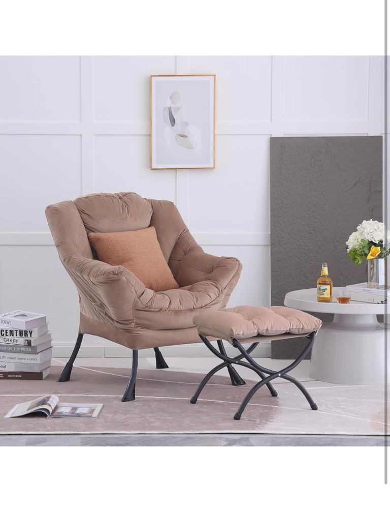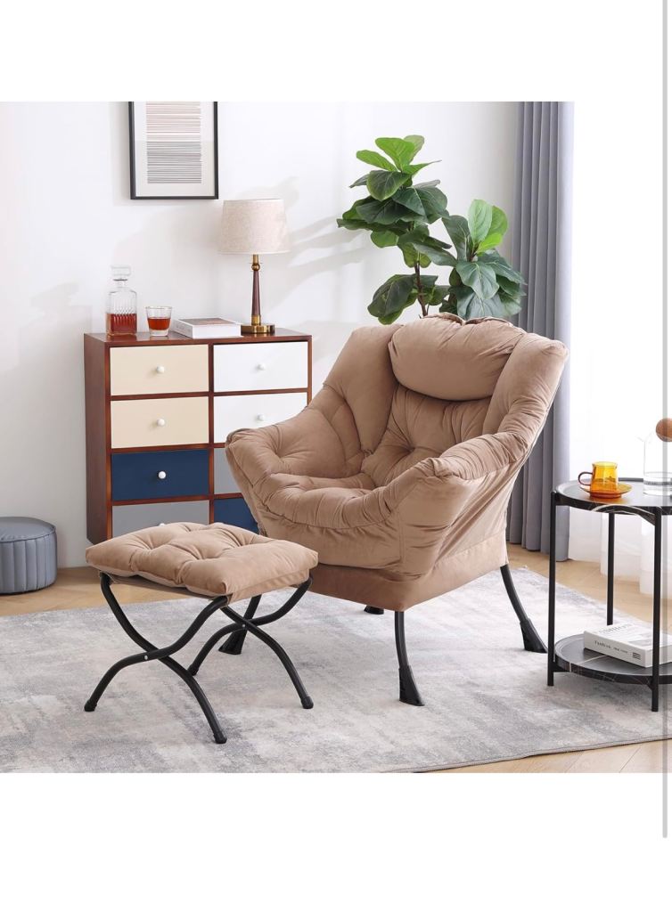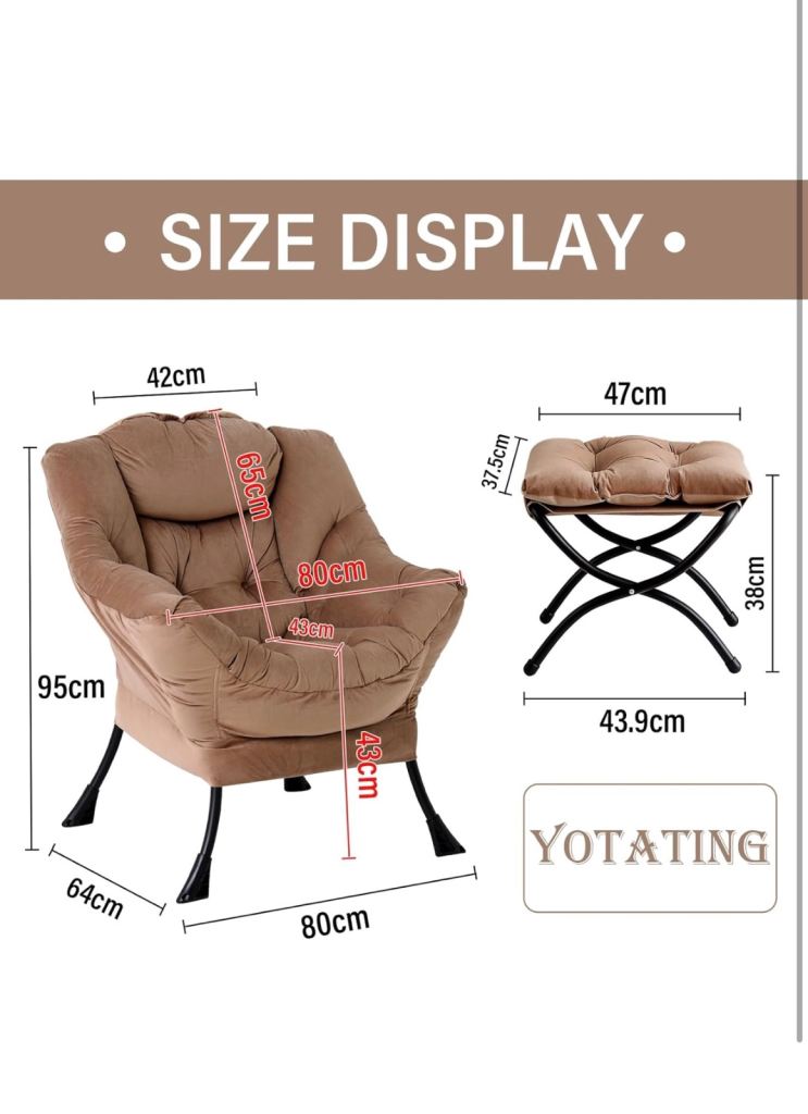 Comfy Armchair with Footstool, Lazy Chair with Ottoman Leisure Accent Chair Relax Lounge Chair with Armrests & Side Pocket for Living Room, Bedroom & Small Spaces Armchair, Khaki