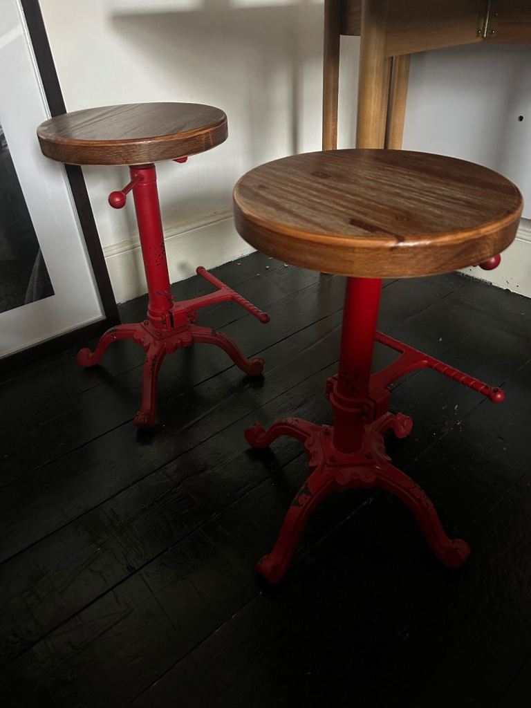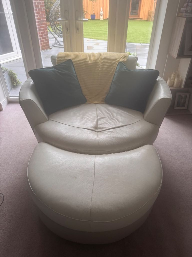 Blue footstool with pull up storage only had a week roomy and comfortable. Plush material from smoke free home. Very sylist