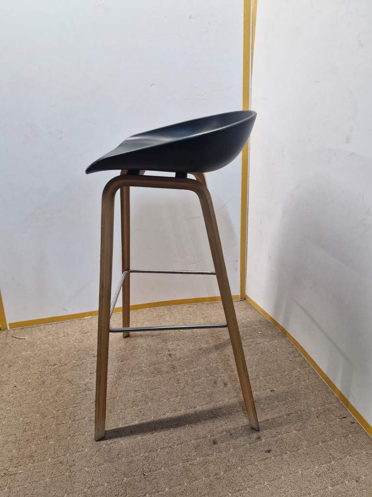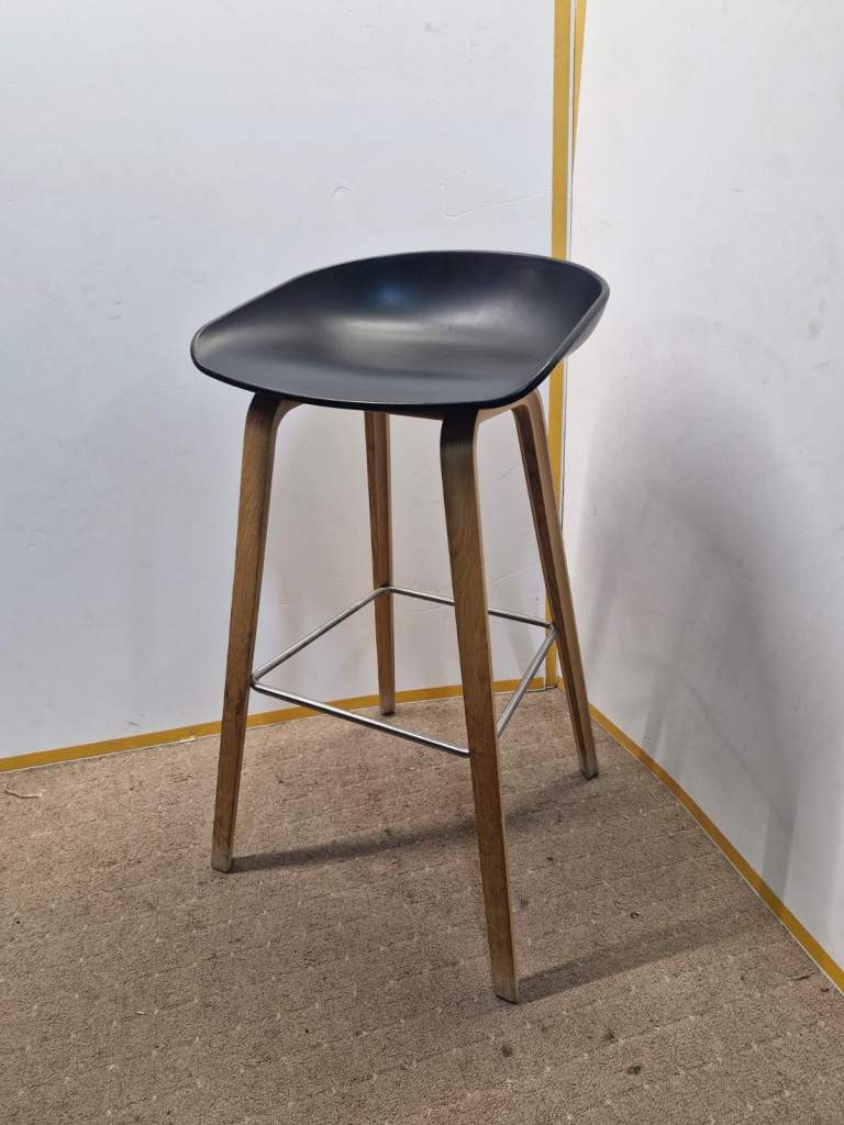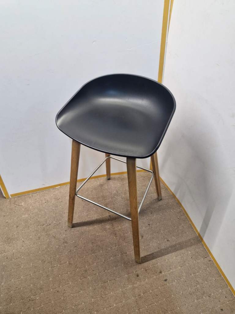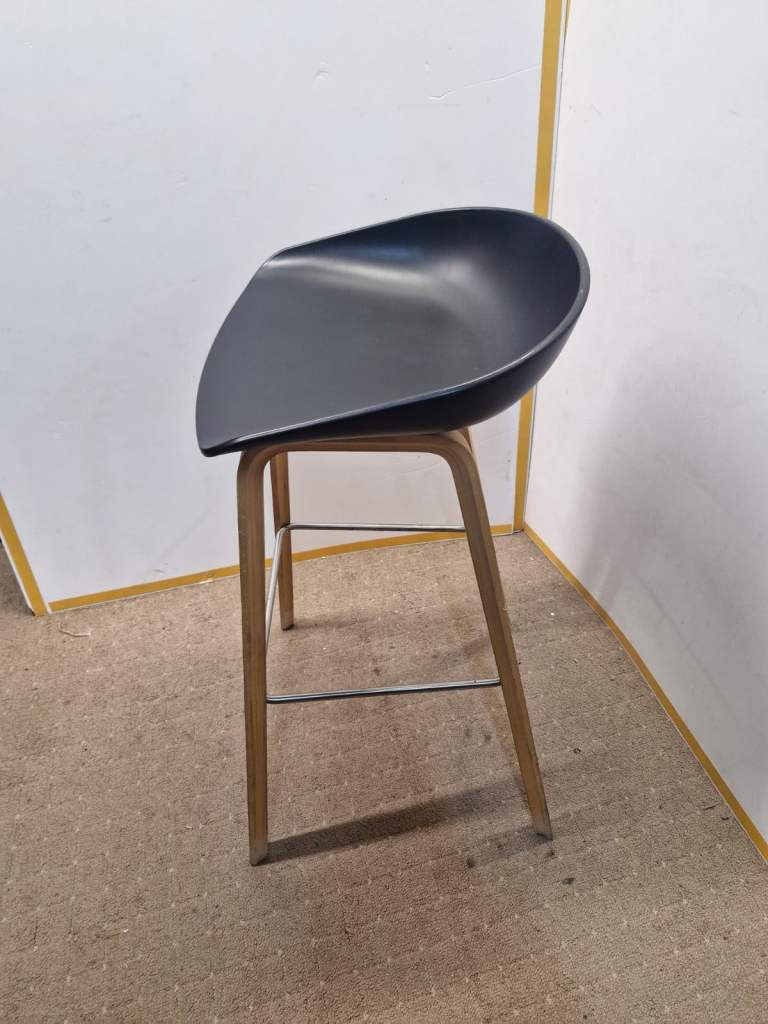 Featuring a curved backrest and long, elegant wooden legs, About A Stool AAS 32 shares the same versatile profile as the other designs in the collection. The post-consumer recycled plastic seat is offered in a wide palette of contemporary colours and multiple front upholstery options, with the legs available in two heights in different wood finishes. The series’ simple yet strong visual presence makes it ideal as a bar stool in a variety of corporate, public, and private contexts.