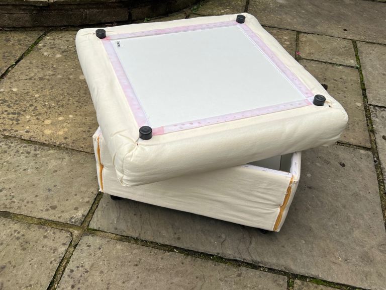 IKEA FOOTSTOOL OTTOMAN POUFFE SEAT WITH STORAGE ON WHEELS READY FOR REUPHOLSTERING